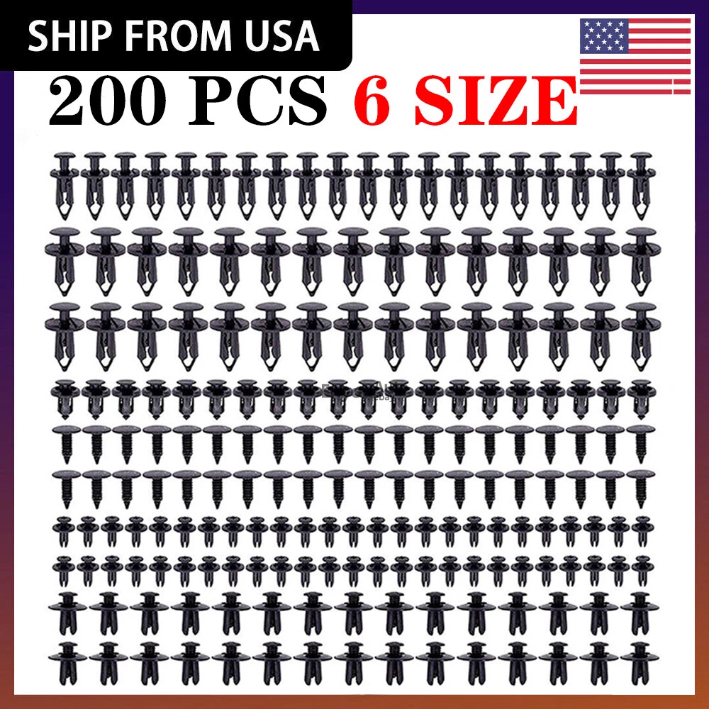 Features: 1.Made of high quality plastic material, durable and practical to use 2.Anti-wear and anti-corrosion, widely used in door trim, fenders, bumpers, radiator shields, side skirts, grilles, etc. 3.Quickly and easily remove the door panels and trim clips without damaging them. 4.Includes 6 sizes, different sizes to meet your different needs, a total of 200. 5.Save your time and money. No need to go to the auto parts store to find different clips. Specifications: 1.Colour: Black (As pictures show) 2.Material: Plastic 3.Application: Universal 4.Package Contents:200*Fastener Rivet Clips 6 Sizes: φ9mm:30PCS (high: 35mm/1.37in) φ8mm:50PCS (high: 33.6mm/1.32in) φ10mm:30PCS (high: 25mm/0.98in) φ8mm:30PCS (high: 22mm/0.86in) φ6mm:30PCS (high: 19mm/0.74in) φ7mm:30PCS (high: 23mm/0.9in) Package Included: 200x Fastener Rivet Clips Kit