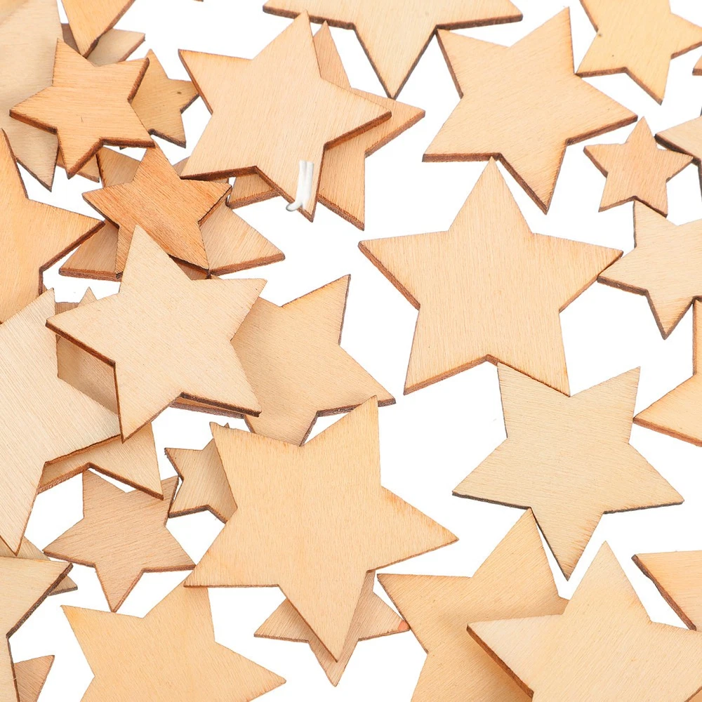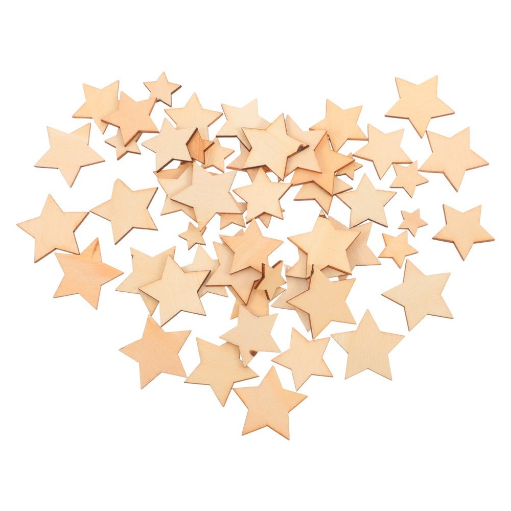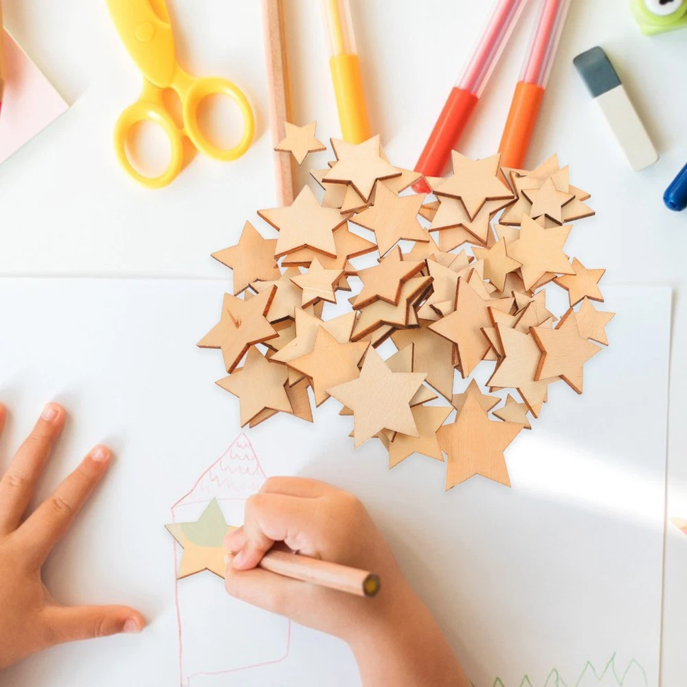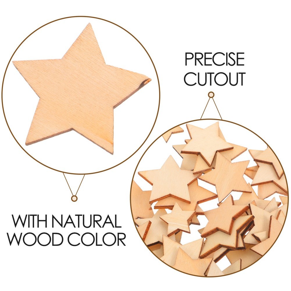 200Pcs Natural Wood Star Craft Shapes Ornaments for Scrapbooking Home Decor