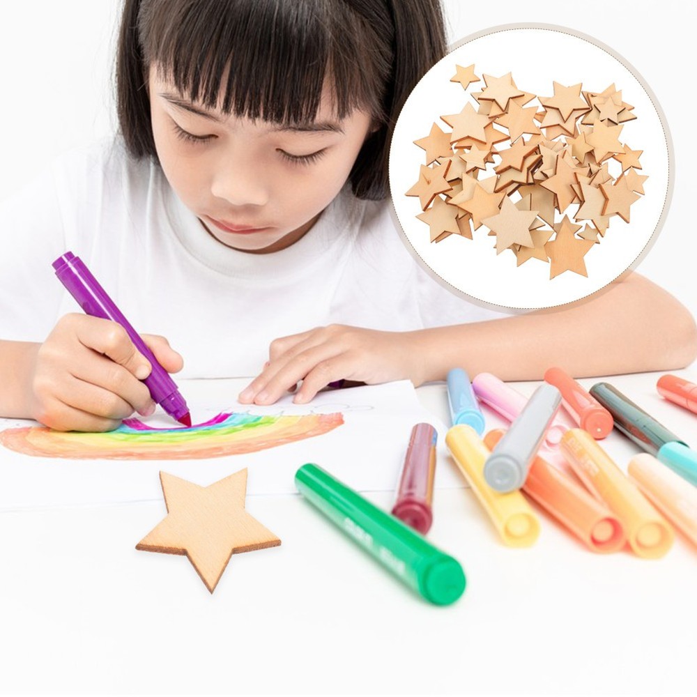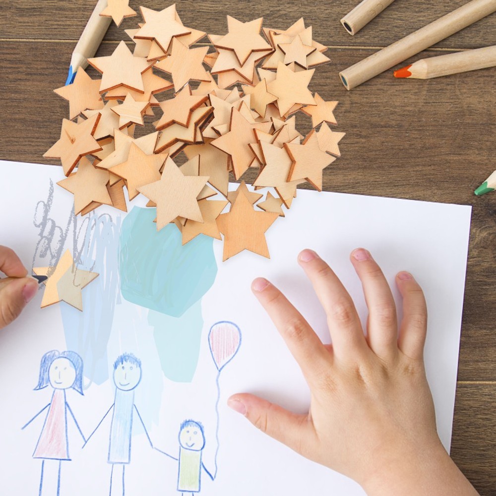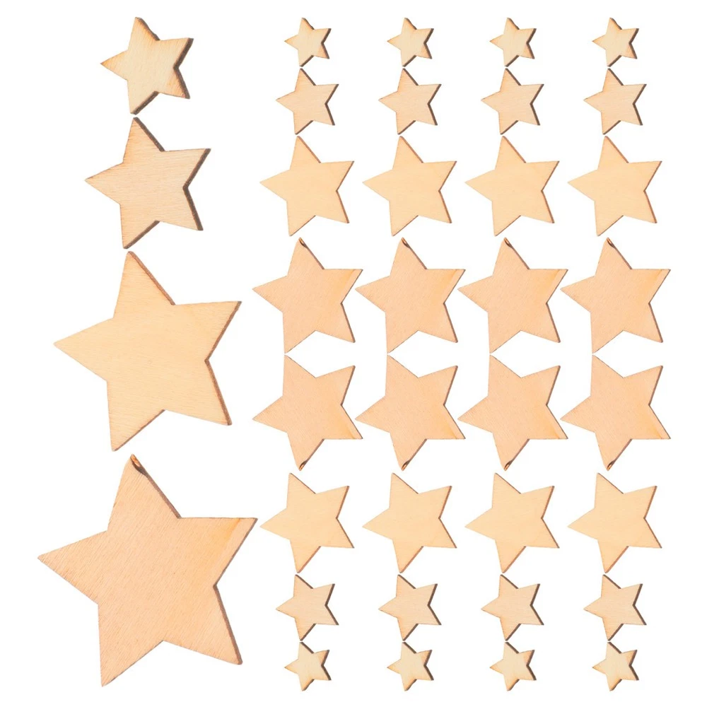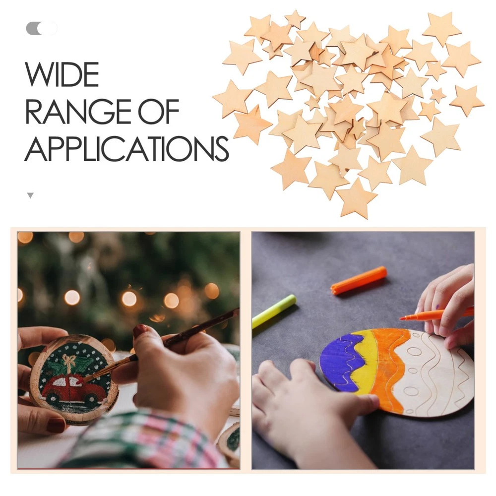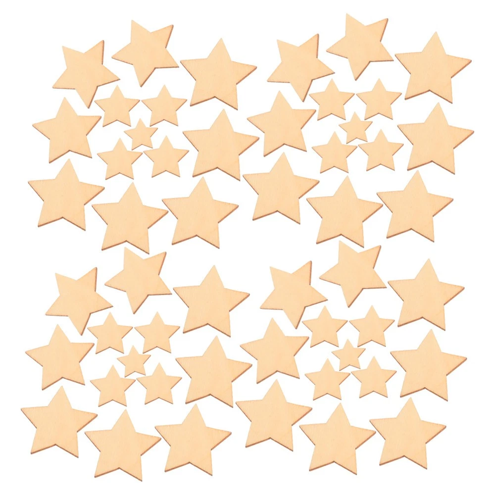 200Pcs Natural Wood Star Craft Shapes Ornaments for Scrapbooking Home Decor