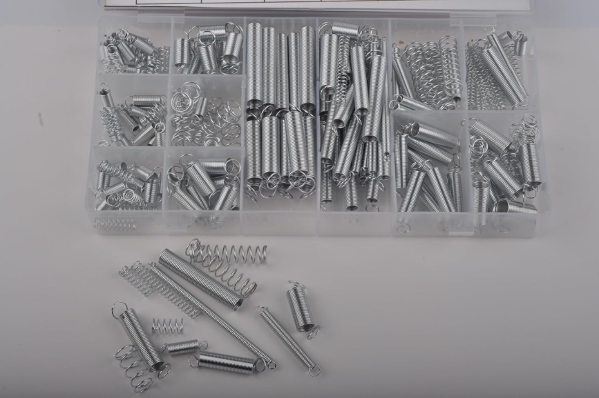 200 Compression Springs Assortment Kit 20 Different Sizes Mini Stainless S US Warehouse - FREE & FAST Shipping in US Product Description: 200 pcs spring kit includes extension springs and compression springs in 20 different sizes, made of zinc spring steel, which is very durable ,the types and size are fully adapted to your different needs WIDE APPLICATION: Used in doors,curtain,automobiles,bicycles,mechanical devices,umbrella,kettle,razor,aircraft,antique tape recorder,repair toy, pliers, piano, scissors, manual tools and equipment etc Compression spring size: 9/32" x 1/2", 1/4" x 13/32", 7/32" x 11/16", 3/8"x 5/8", 3/8" x 3/4", 9/32" x 3/4", 23/64" x 1-3/8", 7/32" x 1-1/2" Tensile spring size: 13/64 "x 13/16", 7/32 "x 1", 1/4 "x 7/8", 5/16 "x 1-1/4", 5/16 "x 1-3/4" Packaging: each small spring is placed in a plastic box with a size table label, compact and light weight, easy to store and carry Feedback: 1.Any question for your order, please contact us in time, we will reply to you within 24 hours and give you a satisfactory answer. 2.If you are satisfied with our products and services, hope to take up your a little precious time to leave feedback reviews for our products.Thanks! 3.Your satisfaction is our effort. Welcome to order again! Have a great day! Our Policy: 100% Satisfaction Guarantee 20% of restocking fee will be charged for return item