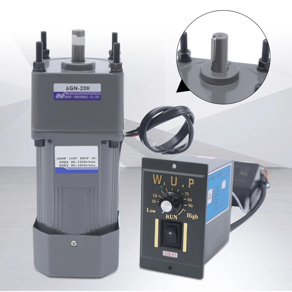 200W 110V AC Gear Motor Electric Variable with Speed Controller Single-phase 20K 110V Knob Motor Speed Controller Variable Adjustable Speed Regulator Specification Voltage: 110V Power: 200W Output Speed: 68 r/min Rated Torque: 24.1 N.m Gear Reduction Ratio: 20K Motor Gross Weight: 7kg/15.4lbs Motor Net Weight: 6.8kg/14.99lbs Motor Package Size: 32*12.5*12.5cm/12.6*4.9*4.9inch Motor Product Size: 8.4*10.4*17.2cm/3.3*4*6.77inch Package Size (Reduction Gearbox): 18.5*10.5*7cm/7.3*4.1*2.8inch Reduction Gearbox Product Size (L*W*H): 8.4*10.4*6.6cm/3.3*4*2.6inch Shaft Length (Reduction Gearbox): 3.6cm/1.4inch Shaft Thickness (Reduction Gearbox): 1.5cm/0.6inch Key Width (Reduction Gearbox): 5mm/0.2inch Shaft Eccentricity (Reduction Gearbox): 2cm/0.8inch Aperture (Reduction Gearbox): 8mm/0.3inch Disc Diameter (Reduction Gearbox): 3.9cm/1.5inch Disc Height (Reduction Gearbox): 9mm/0.35inch Diagonal Mounting Hole Distance (Reduction Gearbox): 12cm/4.7inch Hole Applicable Screw (Governor Box): M8 Speed Governor Gross Weight: 0.35kg/0.77lb Speed Governor Net Weight: 0.3kg/0.66lb Speed Governor Package Size: 18.5*10.5*7cm/7.3*4.1*2.8inch Speed Governor Product Size: 8*5.2*9cm/3.1*2*3.5inch Panel Size (Speed Governor): 10*6cm/4*2.4inch Description The stator and rotor of the gear motor adopt pure copper coils, which are more durable and make the motor's power output more smooth and stable. The gear set adopts full ball bearings and high precision alloy steel gears to effectively enhance the rotational torque of the motor and improve working efficiency. It is suitable for the packaging industry, printing industry, textile machinery, food, construction, CNC equipment, sports equipment, machine tool industry, automobile, robot industry, production plant, elevator machinery, barbecue industry, etc. Key Features More Smooth: The stator and rotor adopt pure copper coils, which are more durable and make the motor's power output more smooth. Forward and Reverse Rotatable: This motor supports forward and reverses rotation that can be achieved by changing the position of the governor wiring , so you can adjust the rotational direction according to the specific situation, which can meet your various needs. More Wear-resistant Gears: The one-piece gearbox undergoes a heat treatment process to improve the wear resistance of the gears, making the gears be used for a long period. Lower Temperature and Noise: Both ends of the rotor of the motor are equipped with ball bearings, so there is less friction, a lower temperature generated by friction, and lower noise generated. Time-saving and Effort-saving: The gearbox has a built-in solid lubricant, so it can be used for about ten years before the lubricant in the gearbox needs to be replaced, which is more time-saving and effort-saving. Large Rotational Torque: The gear set adopts full ball bearings and high precision alloy steel gears to effectively enhance the rotational torque of the motor and improve working efficiency. Fast Rotation: The bearings of the motor with a fast speed make the motor work better in a shorter period, promoting working efficiency. High-quality Material Gears: The gears of the motors are machined by micro-roll shaving with special alloy tools, so the gears have high strength, high hardness, and great durability. Stable Running: The finely manufactured parts make the top cover and bottom cover tightly and firmly combined so that the rotor can run stably. Details Fan Heat Sink and Heat Sinkhole: The built-in fan heat sink and heat sinkhole at the end of the motor make the exhaust from the end of the motor smooth to achieve effective heat dissipation and extend the life of the motor. Speed Control Knob: You can freely adjust any speed because of the infinitely adjustable speed according to the different situations by turning the speed control knob on the speed governor from 0 to one hundred percent of the speed . The faster/slower you turn the knob to the right/left, the faster/slower the speed. Application It is suitable for the packaging industry, printing industry, textile machinery, food, construction, CNC equipment, sports equipment, machine tool industry, automobile, robot industry, production plant, elevator machinery, barbecue industry, etc. Installation 1. This product needs basic assembly. Professional would be highly recommended. 2. If you have any questions, please feel free to contact us, we are willing to answer your questions. Package Included 1 * Gear Motor 1 * Speed Governor Notes This motor will reach a temperature rise of about 65 degrees Celsius during operation, which is normal and does not affect the use. Please make sure you do not mind before ordering . Please allow the slight color difference caused by the shooting light and 1-3 cm error due to manual measurement, and make sure you do not mind before ordering. Note:Based on the industrial standard, to meet different needs of customers, our motor does not include the power cord, you need to purchase the power cord to connect. Payment Delivery details Terms of sales About us Contact us Payment We accept ebay payment 。 Fees such as import duties, taxes are not included in the item price or shipping costs. These charges are the buyer's responsibility. Delivery details Shipping: 2-9 working days to: USA Terms of sales We maintain high standards of excellence and strive for hundred percent customer satisfaction. Feedback is very important to us. We hope that you contact us immediately before you give neutral or negative feedback, so that we can address your concerns. It is impossible to address issues if we do not know about them! About us Your satis faction is our ultimate goal. We work hard to earn your trust and future business. Our certified technicians have tested each item before shipping. The unit comes with 1 year limited warranty on all manufacturing defects. a) If you receive a defective item, you may return it or ask for a discount. Please contact us within 14 days
