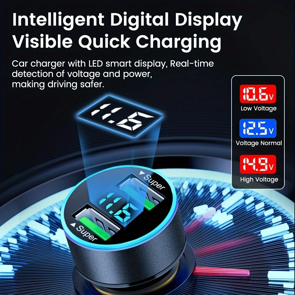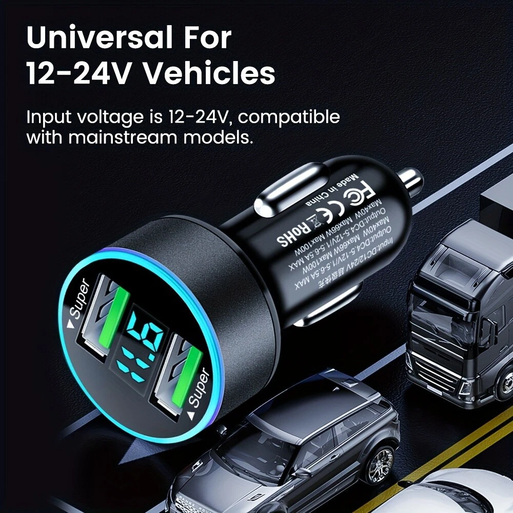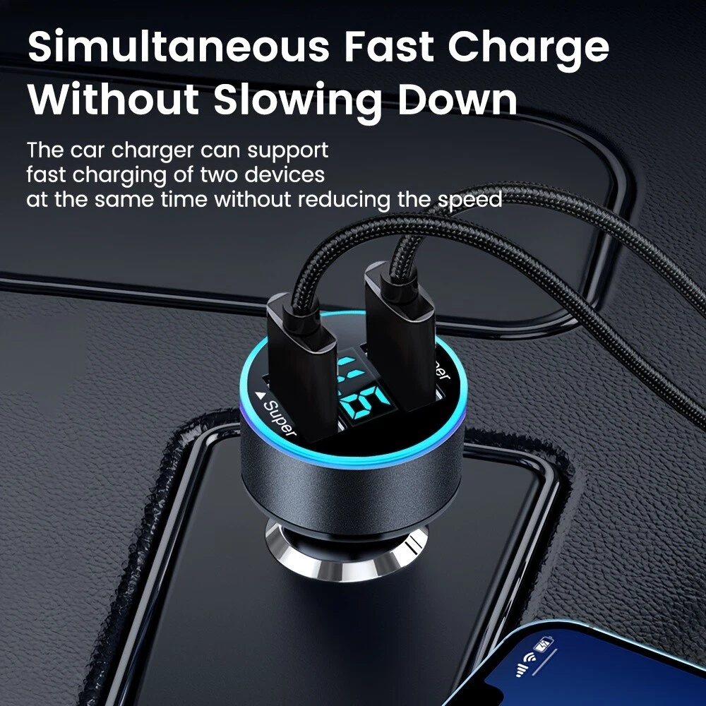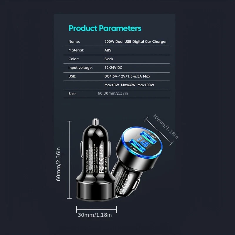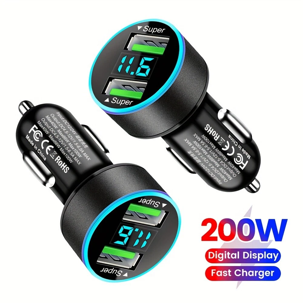 200W Dual USB Digital Display Car Charger - Rapid Dual Port 100W+100W Fast Charg