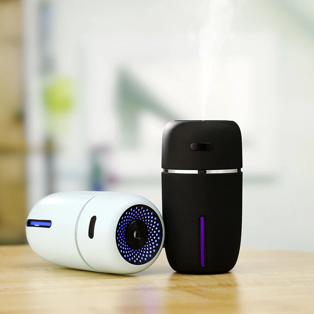Product Description: New Arrival Specifications: * Materials: ABS+PP+Silicone+Electric Parts * Working Voltage:DC 5V * Working Current:500mA * Power Usage:2.5W * Capacity:200ML * Spray Output:30mL/H * Timing:4.5H of First Mode / 9H of Second Mode * Item Color:White/Black * Item Size:133.5*72*72mm / 5.25*2.83*2.83inch * USB Cable Length: Appro. 1m Steps of Use: 1.Turn counterclockwise and unscrew cap of bottle 2.Add approprate amount water 3.Turn clockwise and tighten the top cover 4.Plug in the power click the function key the humidifier work First time ,press the function key for 1.5s to turn on the night light mode,7 colors lights will change automatically; Then press and hold for 1.5s,the light is fixed. Press again and hold for 1.5s,to turn off the night light mode. Package includes: 1 x Humidifier 1 x USB Cable 1 x User Manual