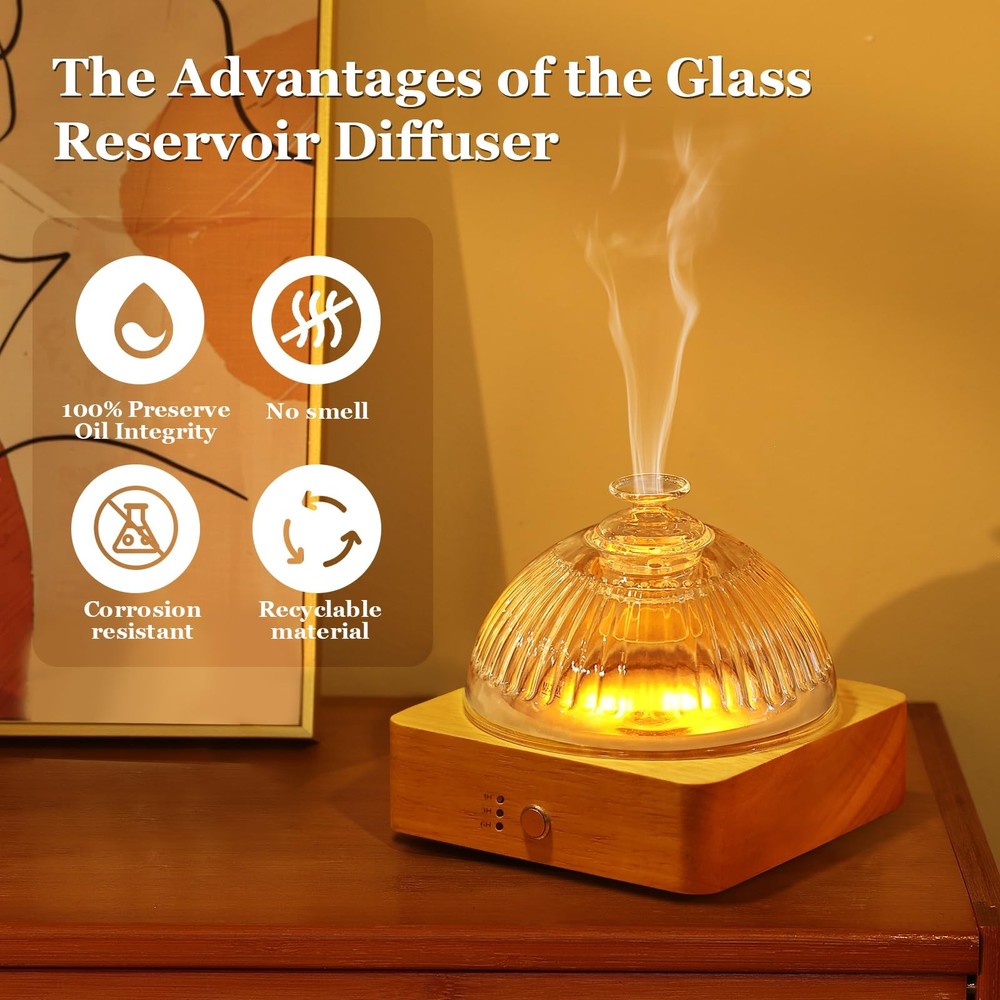 This essential oil diffuser is a game-changer! The sleek glass design looks elegant, and it works like a charm—quiet, efficient, and fills the room with a lovely mist. The ultrasonic technology keeps the oils fresh, and the large 200ml capacity means fewer refills. Just remember to use natural oils and clean it regularly. Perfect for relaxation or freshening up any space!