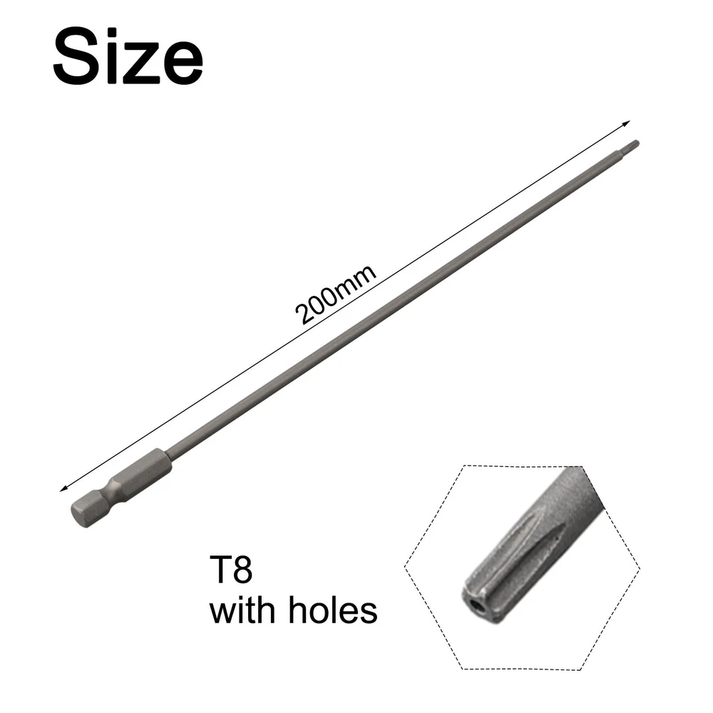 Multi Purpose 200mm For Torx Driver Bits with Magnetic Hex Shank Features DESCRIPTION Features: *The accuracy and durability of this screwdriver meets higher standards. Use them for DIY home projects or work sites. *With magnetic, the parts adopt strong permanent magnet, which can fix the screws firmly. Perfect placement every time. *Standard shank diameter, 6.35mm on the opposite side of the hexagonal shank, 1/4 standard shank diameter, suitable for all kinds of pneumatic screwdrivers, electric screwdrivers, and rechargeable screwdrivers. *Straight and concentric angles can effectively reduce the phenomenon of bit swinging. *Made of sturdy alloy steel, high hardness, strong torsion, long-term use. *Upgraded anti-rust and better storage, the for adopts special anti-rust for treatment. Specifications: Product name: Screwdriver Bits Material: Steel Color: Grey Length: 200mm/ 7.78Inch Head: for Torx Shank: 1/4 Inch Hex Magnetic: Yes With Hole: Yes Optional Size: T8, for T10, for T15, for T20, for T25, T27, for T30, T40 Suitable for: electric drills with speed regulating device, electric screwdrivers, hand screwdrivers Quantity: 1Pc Package Includes: 1× for Torx Screwdriver Bits Notes: 1.Transition: 1cm=10mm=0.39inch. 2. The real color of the item may be slightly different from the pictures shown on website caused by many factors such as brightness of your monitor and light brightness. 3. Please allow slight manual measurement deviation for the data. POLICES Shipping Payment WARRANTY We only ship to confirmed ebay Order addresses. Please comfirm that your Order address is in line with your shipping address. Please kindly note that the c ombined shipping is not provided because the shipping fee is calculated by weight. Also, the each additional item means exactly the the same color and size. It takes about 7 -15 working days to US; about 10-30 working days to other countries. Transit time may be a little delayed because of the bad weather and customs inspection . If you do not receive your item within 30 working days since payment finished, please contact us immediately for further assistance. Payment must be completed within 5 days. If you have any problems about payment, please contact us via ebay message. We strive for 100% customer satisfaction! Positive Feedback is very important to us. If you have any questions, p lease feel free to contact us via "Ask seller a question" . We will reply your email within 24 working hours.