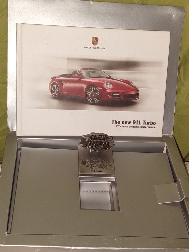 The 2010-2012 Porsche 911 997.2 Turbo Gift Box VTG Model Engine Brochure is a collectible advertising piece for the Porsche 911 Turbo model. Created in 2009/2010, this original brochure showcases the features and specifications of the iconic automobile. Targeted towards new owners, this brochure offers a detailed look at the Porsche 911 Turbo, making it a valuable addition to any automotive enthusiast's collection. With its European origin and high-quality design, this brochure serves as a testament to the luxury and performance of Porsche vehicles.