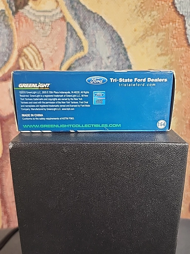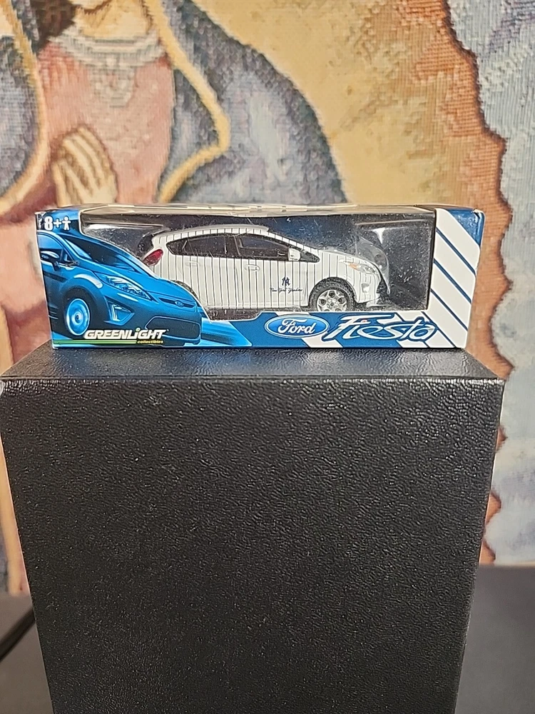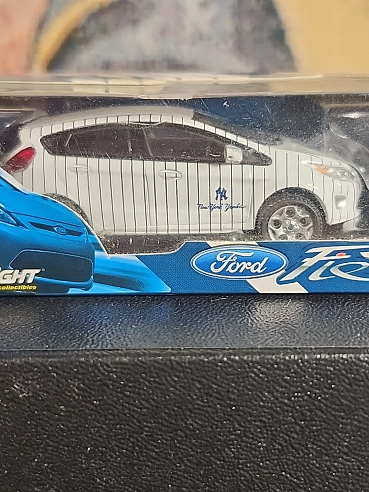 The product is a Greenlight diecast Ford Fiesta car in white color, with a scale of 1:64. It is a special edition limited to New York Yankees dealer promo, from the year 2010. It features an unopened box and is intended for children aged 8-11 years. The model year of the car is 2011.