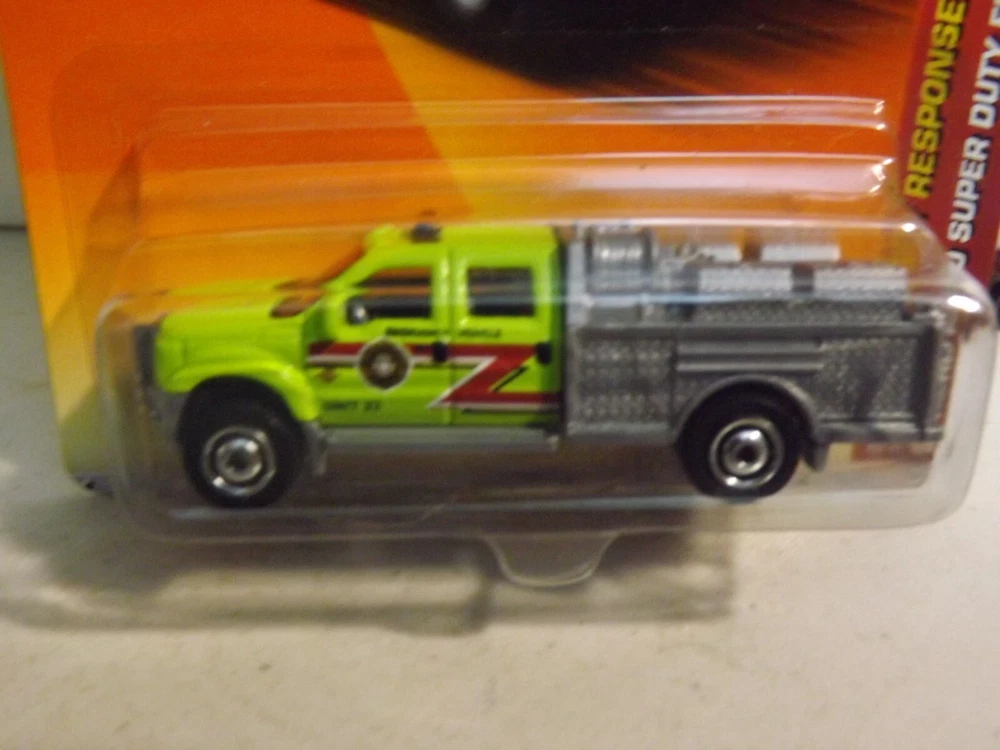 This auction is for a 2010 Matchbox, Green & Gray, Ford F-550 Super Duty Fire Truck, Emergency Response, 50 of 100 , Car is mint card is mint, Winning bidder pays $5.25 for Shipping and Handling with Delivery Confirmation in the U.S.A. Will combine shipping. ,