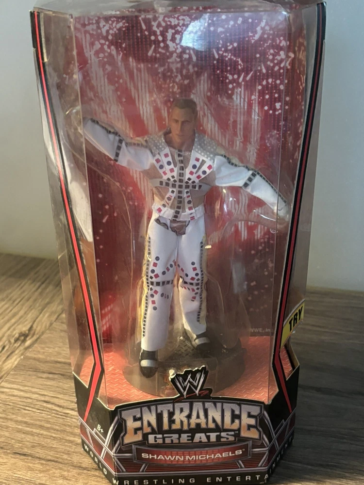 Great lot of 2 legends both sealed in original package. HBK bubble is cracked on top right corner and both packages have some wear. Please see pics for details. Theme music plays for HBK. Thanks