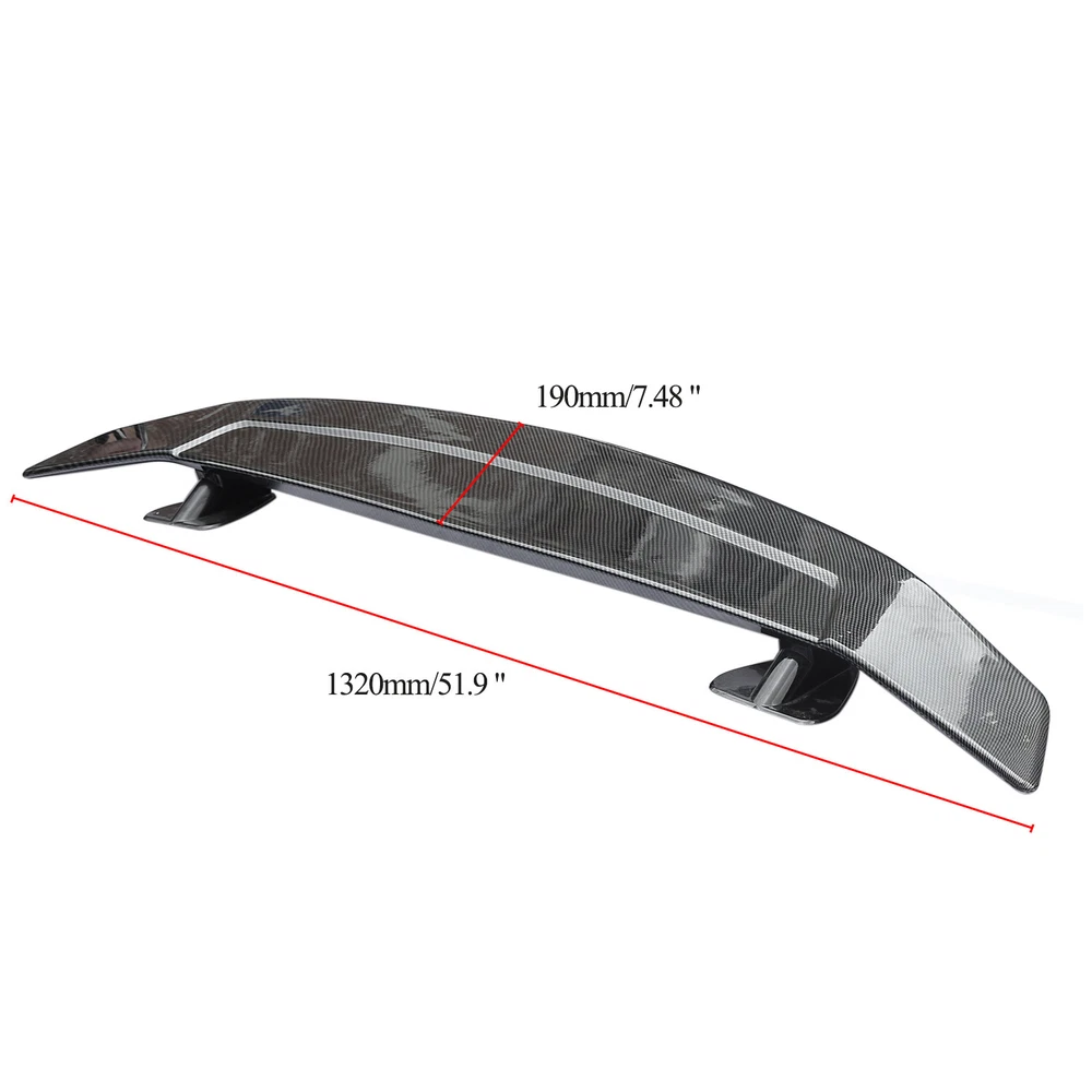Product Description Spoiler Universal for Racing Sedan Car Carbon Fiber The Rear Trunk Spoiler is one of the simplest mods you can do to the exterior of your car that will give your car that completely different look. Not only are spoilers meant for great looks, they also help with the aero dynamics of the car by lowering drag, or helping to put more downforce on the car making sure that the wheels stay grounded for maximum traction. Fitment: Universal fit for most sedan cars Specifications: Product Name: Sedan Rear Spoiler for Racing Car Material: ABS Size: Length 132cm Color: 3D Carbon Fiber Weight: 2.50kg Features: Made of High Quality Lightweight ABS for Extreme Strength. Latest Design GT Wing Spoiler Completed Kit, Improve Handling And Make Tail More Stable in High Speed. Water Transfer Carbon Fiber for Highest Durability and Appearances. Adjustable Angles for Customizable Usages and Efficiencies, Enhances Aerodynamic. Reduces Drag, Increases Fuel Efficiency, Reinforces Downforce, Traction and Stability. Double-sided adhesive paste, Easy to Install. Package included: 1 x Spoiler On Jan 7, 2025 at 11:50:43 PST, seller added the following information: