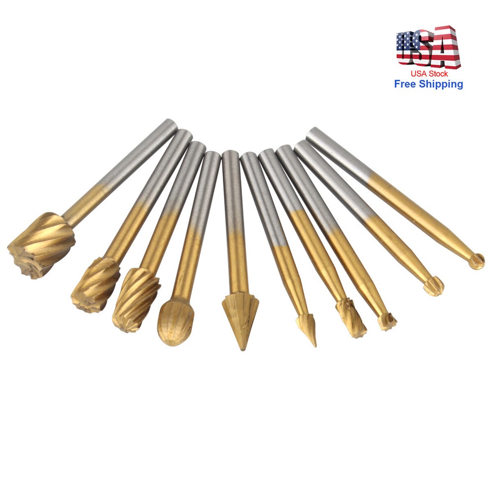 You may also like 20x 1/8" Tungsten Carbide Rotary Drill Bits Burr Die Grinder Shank Carving Set_. 16.72 USD Free shipping Tungsten Carbide Double Cut Rotary Burr Set w/ 1/8 Inch Shank 1/4 Head Bit Tool※ 12.28 USD Free shipping Product Description 10x Tungsten Carbide Rotary Burr Set Grinder Bit 1/8" Shank Dremel Rotary Tools※ Features: 10 different shapes, ideal for fine processing of various soft molds. Suitable for engraving operations such as carving, chamfering, chamfering, slotting, reaming and hollowing of soft materials such as wood, plastic, etc. Specification: File type: Fine needle rotary file Material: Tungsten Carbide,High speed steel Shank diameter: 3 mm (1/8 inch) Total length: 39mm (1.53 inch) Package Included: 1 box of 10pcs Gold or Silver Grinding heads Payment We accept PayPal only. If buyer want to delay the payment because of financial problem, please contact me by the ebay message within 3 days Payment via PayPal (PayPal accepts all major credits/debit cards and eCheque) ECheque payment will tak e 3-10 days to get clear, thus DELAYing the shipment. Shipping Handling time: 1 business day (Orders are not processed on weekends & holidays) Tracking information will be sent once item is shipped. Local pick-up is unavailable at the moment. For international shipping and shipping to Guam, Hawaii and Alaska, Please contact us before placing the order. Item is shipped to ebay address. Leaving correct address can minimize delay. Terms For any issues with Defects, Return, Item Exchange request, please contact us first and send us a message first before opening any type of case or request. We devote ourselves making EVERY CUSTOMER in 100% Satisfactory and resolve any problem. We highly value and appreciate your business. Thank you. No returns will be accepted without an RMA number. Please contact us for the RMA number. Return is acceptable within 30 days of delivery. Return for replacement or money back is optional. Returned items must be in the brand new, unaltered and resalable condition. Seller is not responsible for any labor cost, expense in a dealer store, or damage due to wrong installation. Returns Return is accepted within 14 days after the buyer's receiving the item. (Excluding contrived damagement or misusage).100% money-back Guaranteed! All product will be tested in 100% before delivery.If the item is defected by the processing of postage,Buyer has up to 14 days from date of receipt for exchange of a new one.All shipping charges for returned products are to be paid by the buyer,Please contact us for the return address Contact Us All messages will be answered within 24 office hours. Please contact us either by clicking "contact seller" in the "purchase history" section or simply click "ask a question" at the bottom of this page. If you are unsatisfied with our item or service, please contact us before leaving any feedback. We are committed to resolve all issues in a friendly and satisfactory manner. We always reply to messages within 2 business days (off-duty at weekend). If you do not get a response from us, then please check your junk or spam mailbox. powered by