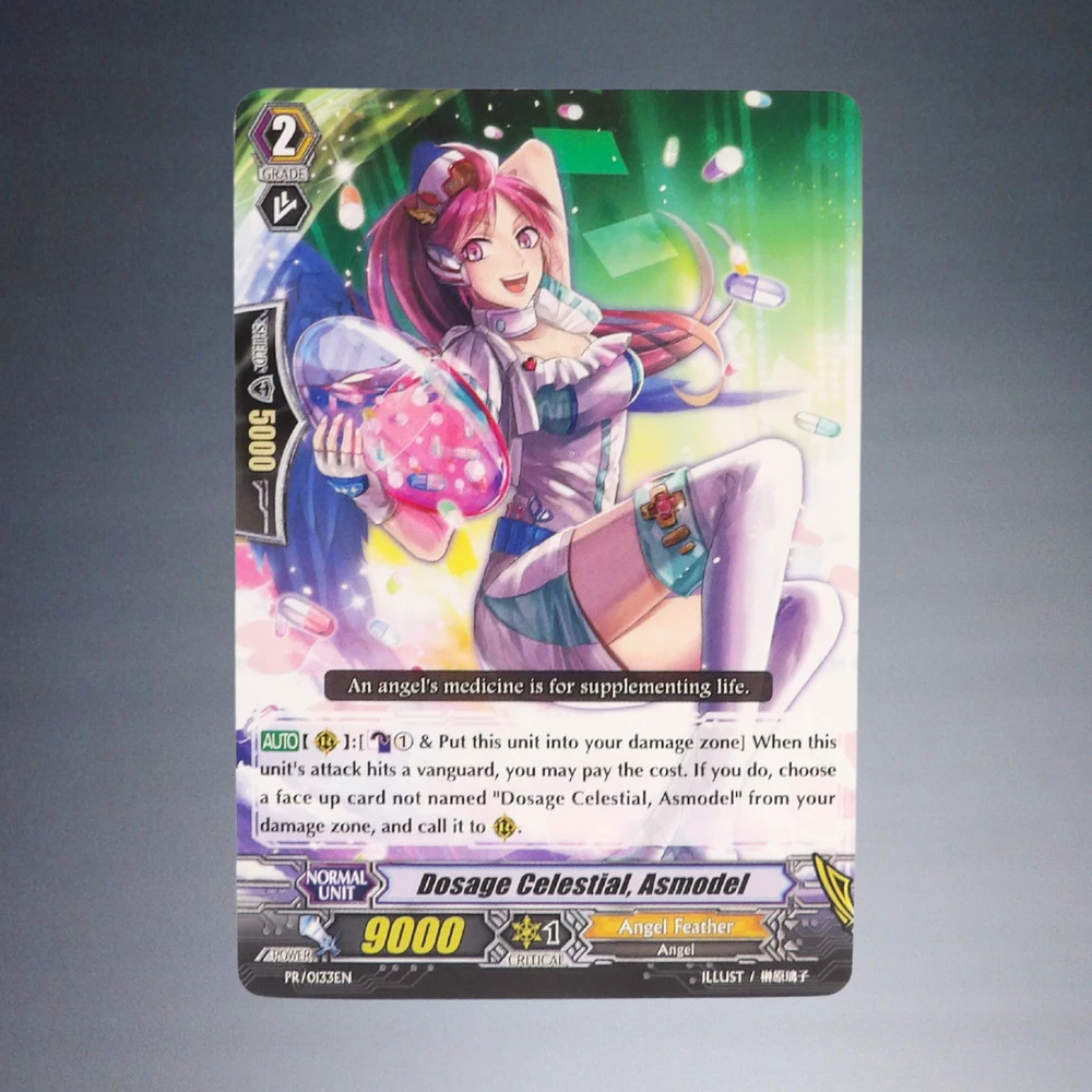 Cardfight!! Vanguard Promo Trading Card Dosage Celestial, Asmodel PR/0133EN Adult Collector - Non Played Card Stored in penny sleeve ππ»ππ» We are excited to present this one adult owner card collection, which has been carefully stored in trading card boxes and preserved in pristine condition. Each card has remained untouched over the years, making this collection a rare find for collectors and enthusiasts. Now, we are thrilled to make these cards available to the public, offering a unique opportunity to own a piece of card collecting history. Most items in our shop are preowned, and many are not brand new unless we state so. Most are from estate sales, auctions, or private collections. The items may show minor age related wear and/or minor flaws consistent with age and use. Please check photos carefully as they are part of the description, we do our best to describe any imperfections. Feel free to ask any questions We Combine USA Shipping PLEASE NOTE OUR STORE BUSINESS POLICIES: PAYMENT: Payment is required within 3 days of purchase (Auction or Buy it Now). If we do not receive a payment within this timeframe, we will cancel the order based on "The Buyer Did Not Pay In Time Allowed" and the item will be relisted. SHIPPING: We take special care when packaging each and every item we sell. Packages are shipped the same or the next day. We do not ship on weekends or on US public holidays. Shipping notifications are updated thru the eBay system so you can track your package easily. RETURNS: We accept returns for items not as described or if you receive the wrong item. Return shipping will be paid by the buyer and is non-refundable. It is very important to us that you are happy with your purchase so if you have any problems or concerns with your order, please feel free to contact us to discuss. We are here to help and resolve any issues. INTERNATIONAL BUYERS: Welcome! Customs duties and taxes are the buyers responsibility. FEEDBACK: We maintain high standards of excellence and strive for 100% customer satisfaction! We greatly appreciate your POSITIVE feedback. Please do NOT leave negative or neutral feedback without any contact. We will leave you 100% feedback after you have paid and received your item. We will highly appreciate 100% feedback left for us. If for any reason you are not happy with your purchase, please contact us to discuss before leaving negative feedback. Customer service is our #1 priority and we are always willing to work things out.