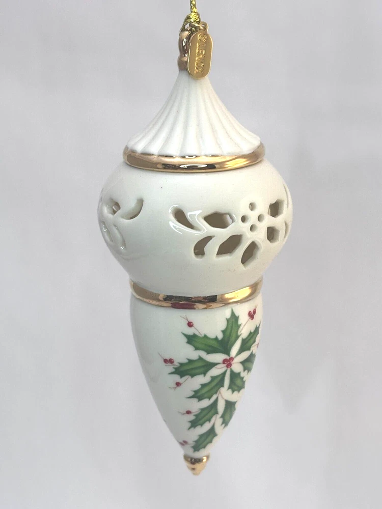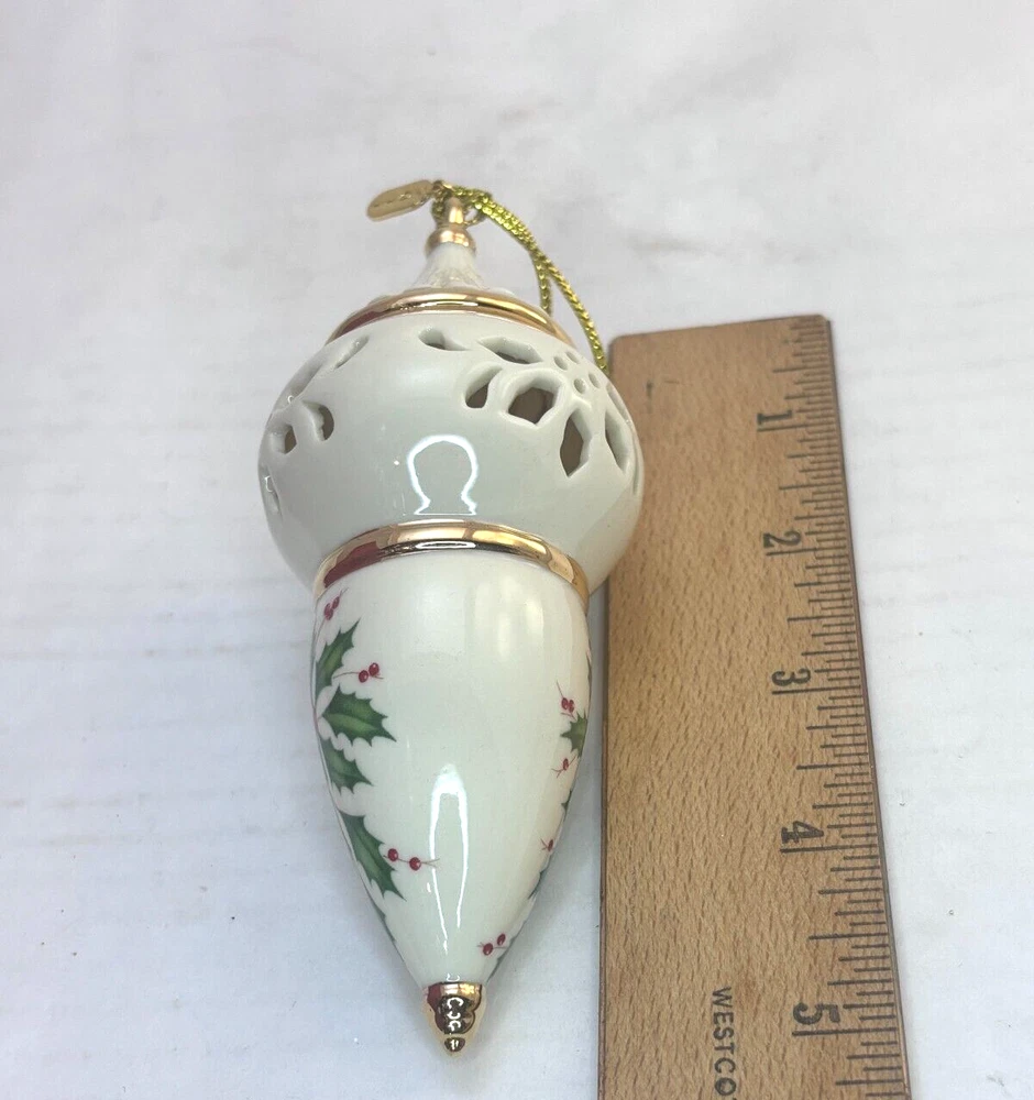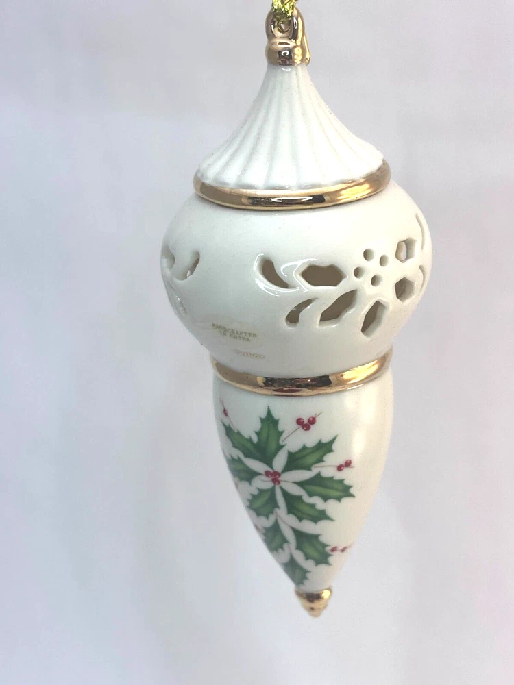 Time Period Manufactured: 2010-2019 Material: Porcelain Size: Small Seller Notes: “very good preowned condition. In original box” Franchise: Lenox Color: Ivory Gold Trim Type: Ornament Occasion: Christmas Set Includes: Ornament Features: Hanging Pattern: Holly Leaves gtin13: 882864310705 Country/Region of Manufacture: China UPC: 882864310705 Theme: Peace Brand: Lenox Number of Items: 1 Year Manufactured: 2011 Shape: oblong Collection: Ornaments Item Height: 4.5"