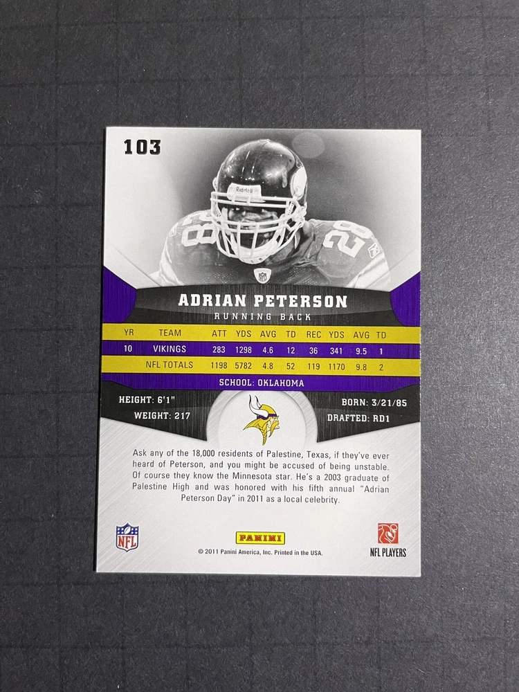 2011 Panini Gridiron Gear Adrian Peterson Card #103 - Minnesota Vikings