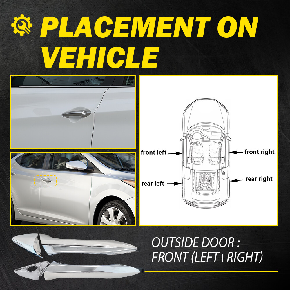 Fit for: 2011-2016 Hyundai Elantra Specifications: OE Number: 826613X000-PFM(Front right) OE Number: 826513X000-PFM(Front left) Product Material: ABS Color: Chrome (as pictures show) Placement on Vehicle: Front right and left of outside door Features: *Perfect Fitment Comply with the industrial standards, use it with confidence. *Strict Quality Control All of our handles undergo strict quality control not just before shipping but throughout the production process. *Durable Material Mainly made of high-quality material to ensure the long service life and durability. *Simple Installation For 2011-16 Hyundai Elantra Front Right + Left Side Exterior Door Handle 2PCS M Fit for: 2011-2016 Hyundai Elantra Specifications: OE Number: 826613X000-PFM(Front right) OE Number: 826513X000-PFM(Front left) Product Material: ABS Color: Chrome (as pictures show) Placement on Vehicle: Front right and left of outside door Features: *Perfect Fitment Comply with the industrial standards, use it with confidence. *Strict Quality Control All of our handles undergo strict quality control not just before shipping but throughout the production process. *Durable Material Mainly made of high-quality material to ensure the long service life and durability. *Simple Installation Easy installation with direct replacement, other modifications are not required. *Warm Notice Please double-check the part number and models in the description to guarantee it fits your vehicle before ordering. Packaging Include: Door handle*2 ABOUT US For 2011-16 Hyundai Elantra Front Right + Left Side Exterior Door Handle 2PCS M Fit for: 2011-2016 Hyundai Elantra Specifications: OE Number: 826613X000-PFM(Front right) OE Number: 826513X000-PFM(Front left) Product Material: ABS Color: Chrome (as pictures show) Placement on Vehicle: Front right and left of outside door Features: *Perfect Fitment Comply with the industrial standards, use it with confidence. *Strict Quality Control All of our handles undergo strict quality control not just before shipping but throughout the production process. *Durable Material Mainly made of high-quality material to ensure the long service life and durability. *Simple Installation Easy installation with direct replacement, other modifications are not required. *Warm Notice Please double-check the part number and models in the description to guarantee it fits your vehicle before ordering. Packaging Include: Door handle*2 FAQ Shipping Returns Contact Us Payment Why swith to LED? LEDs not only give your vehicle a clean, modern look but, with proper use, will outlast any halogen bulb and HID bulb! Low energy draw, high lumen output, and instant on/off LED technology out shines stock bulbs in every way. Which bulbs are used in my vehicle? Check Sylvania automotive lamp replacemnt guide , you can select the year, make, and model of your vehicle, then select the application you want to replace or upgrade from stock. What does CAN Bus mean? CAN Bus means Controller Area Network Bus. This system monitors your vehicle and reports operating conditions. CAN Bus systems are commonly found in European vehicles such as BMW, Audi, Mercedes, Volkswagen, Porsche, and in many American vehicles. While most late model American vehicles have CAN Bus systems, it is always good to check with your vehicle dealer to see which system your vehicle has before purchasing electrical products. When do you need Warning Canceller? Some vehicles with cmplex internal computers(such as Audi,BMW,Jaguar,Mercedes,etc.) might report on-dash errors or flickering on the headlights. The warning canceller fixes the dashboard warning and flickering effect. Bulb Out Dashboard Error: On some vehicles, the dashboard will report as if you have a headlight bulb missing or burnt. It does not affect the headlights functioning, but the light on-dash will be on. The warning canceller fixes the issue. Flickering Issue: This happens when your vehicle does not recognize the new headlights installed. When turning the headlights on, the vehicle's computer does not understand the signal back from the headlights hence thinking they are still off. This triggers the headlight flickering effect. The warning canceller solves this issue. LED Advantages: Very low and efficient energy consumption than halogen bulbs & HID Bulbs Compared with HID bulbs, LED bulbs Light up instantly, no warm up period Low voltage protection, high precision constant current driver chip Longer lifespan than HID and halogen bulbs Light can be controlled easily in color and intensity Easy to install a LED headlight conversion kit (1) We will ship your item(s) within 24 hours. (2) We ship this item to US only via USPS first class mail. It usually takes 3-6 working days to deliver. How Long Will It Take to Receive My Refund? If you have emailed us for a refund ,once we have approved it ,after 60 days your money will be refunded. The estimated time for the refund to appear in your account is based on the payment method you use. Paypal is the only supported in NIGHTEYE Store. Please notify us within 30 days after you've received your purchased item. All return requests must be submitted through your eBay account. NOTE: Buyers pay for the return shipping fee. Items to be returned must be in resalable condition, for example: You do not satisfy the item quality Item do not fit your vehicle perfect Item can not reach your expectation The item arrived be broken You do not receive the item Parcel Lost Receive the wrong item If you have problems with the above issue, please Contact Us immediately ! [Our office hours are MONDAY - Saturday 9:00PM - 6:00PM PST, but we will response you once we get your message .There will be some delay on respons if you send message or E-Mail on Sundy.] (1).Negative feedback will not help resolve any problems you have, please contact us via eBay messages before leaving negative feedback, our customer service will make best effort to help you with the issues. (2).We maintain high standar