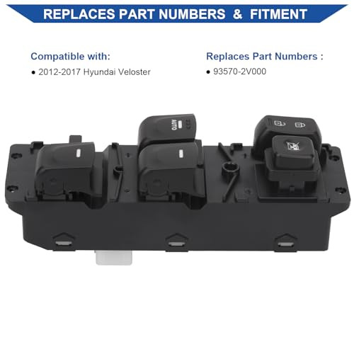 Menu 1. We require immediate payment. 2. We currently accept payment via eBay managed payments only. 3. Once payment is cleared, we will dispatch your shipment within 1-3 business days. Please refer to the "Shipping" tab for more information regarding shipping speed to your destination. Master Power Window Switch Button Front Left Driver Side Compatible with 2012-2017 Hyundai Veloster, Replaces OEM 93570-2V000, 1 Auto, 16 Pins Product description 【Compatibility】 The master power window switch driver side compatible with 2012-2017 Hyundai Veloster. 【Replace Part】 This master window switch replace vehicle Oem 93570-2V000. 【Package Content】1 x electronic window switch + 1 x switch removal tool. 【Important】Without an exact match of 1 Auto & 16 Pins, this switch will not be compatible with your vehicle. Check your original switch thoroughly to ensure you are ordering the correct switch. 【Purchase Without Worry】 If the power window switch has any problems, simply contact us for giving you a satisfactory solution. PLEASE MESSAGE US IF YOU HAVE ANY OTHER QUESTIONS, AND MANY THANKS FOR READING ALL OF THIS. Copyright ©#. All Rights Reserved.