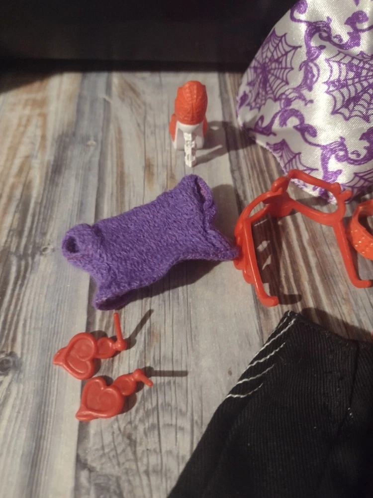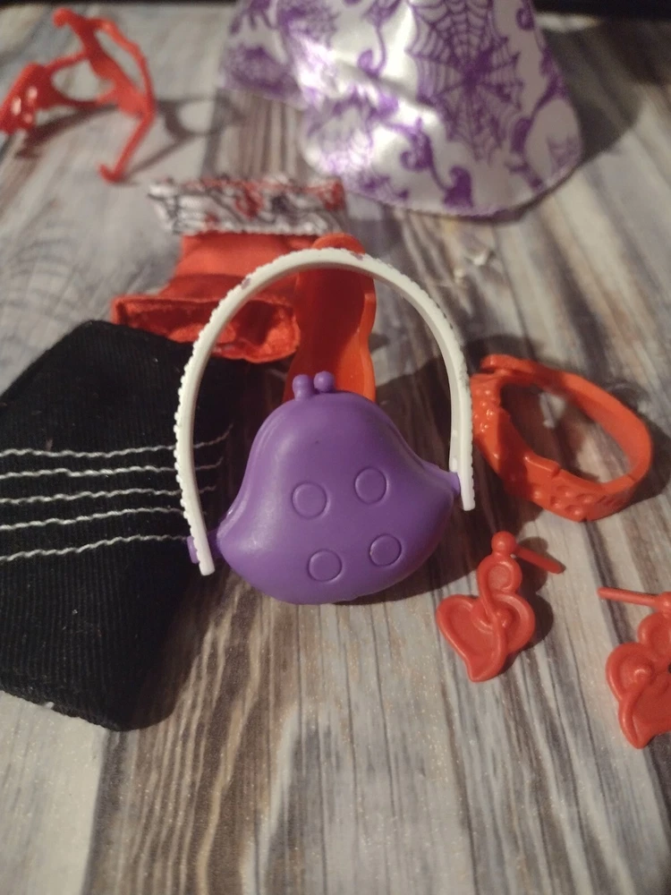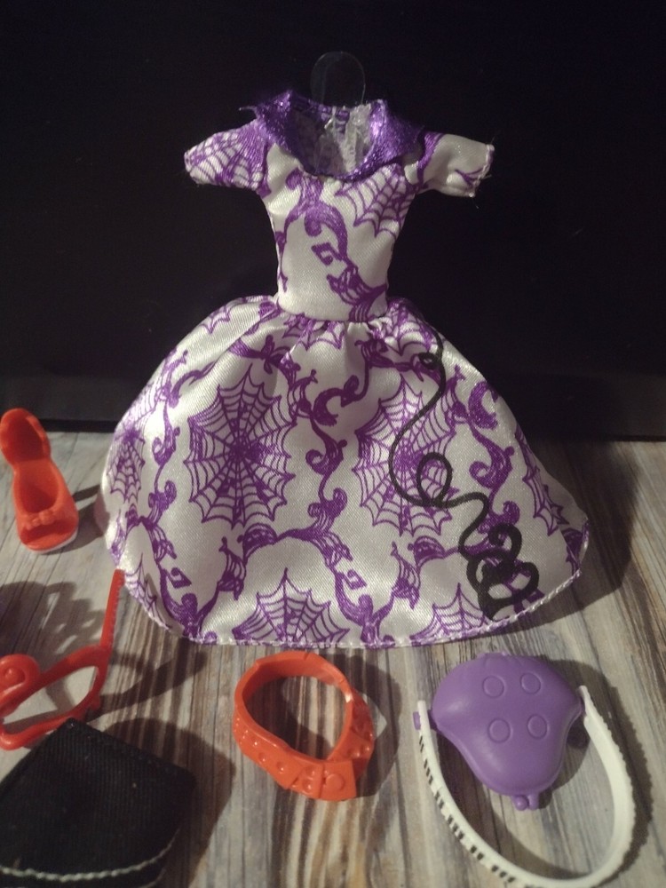 Although listed as used This outfit is new out of package I am selling my personal collection I would open my doll and accessories boxes and store them these pieces have never been on a doll or played with. Clear dress form not included shoe is a single I misplaced the other shoe. The closures have not snagged the clothing no stains or damage. Like new condition.Sold as shown no exchanges or returns. Please see photos for condition of items. Please message me if you have any questions.Thank you for visiting my store.