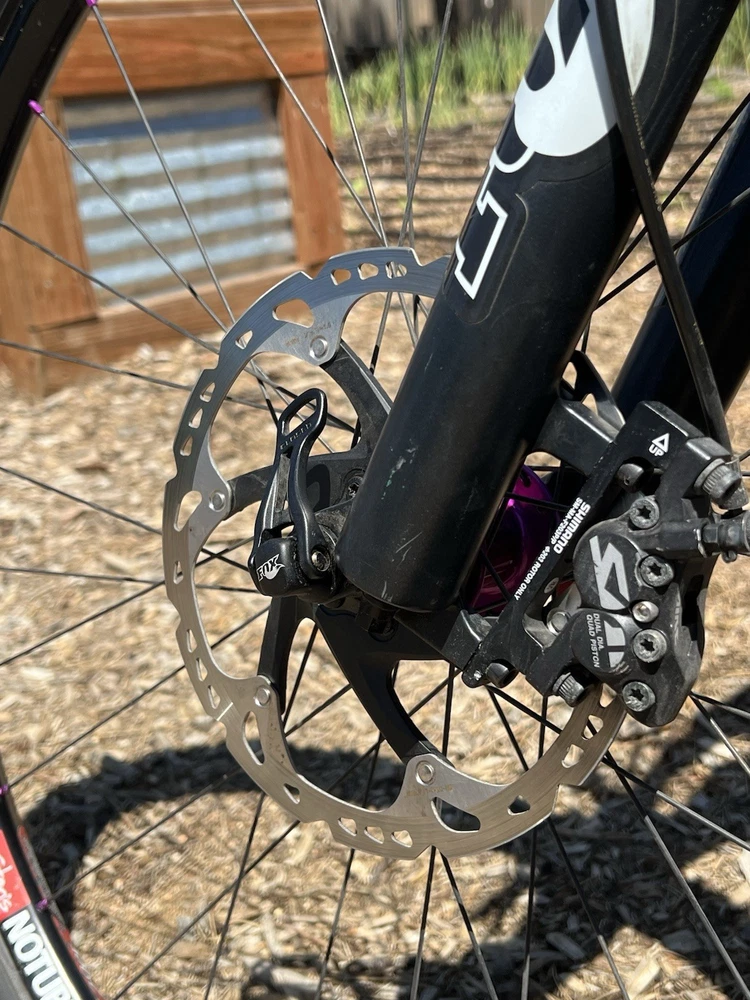 2012 Niner WFO size Medium with custom hand built wheels and custom spec. Very low miles because the owner wasn’t that into riding. Shimano Dynasis 2x10 speed with Wolf goat link and large cog. Tubeless tires will need fresh sealant but tires hold air. Seat post will need air before use. Shock and fork will need air before use. Drivetrain shifts great. Pedals and saddle are not included.