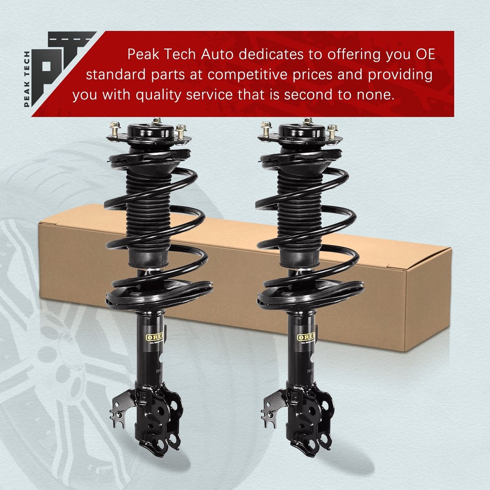 Please kindly know that Peak Tech is a certified distributor of Oredy products. Item in this listing is from brand Oredy. Store Home New Arrival View Feedback Contact us Add to Favourites 2PCs Front Struts for 2012 - 2017 Toyota Camry Hybrid LE & Hybrid XLE & L & XLE & LE Items Description Package Includes: 1x Front Driver Side Complete Strut + 1x Front Passenger Side Complete Strut Compatibility: For 2012 - 2014 Toyota Camry (Hybrid LE, Hybrid XLE, L, LE, XLE) For 2015 - 20117 Toyota Camry (Hybrid LE, Hybrid XLE, LE, XLE) Shipping Payment Return Warranty About us Shipping All orders in the continental 48 States will be shipped free of charge. Orders placed before 12pm (Eastern Standard) will be shipped the same business day of purchase. We only ship to the address provided to us at the time of checkout. Please verify the shipping address before making any payment. We do not ship to Hawaii, Alaska, Puerto Rico, APO/FPO/PO Boxes. Payment Paypal, Visa, and MasterCard are accepted forms of payment. Please use eBay checkout system when place your order. Immediate payment is required for all orders. Return Buyer has 30 days to return the items after receiving packages. Please note we only accept return for brand new products. When the return mistake is made on seller, we will provide a free return. Or, customer will be charged for return shipping fee. We will issue a refund to buyer after receiving and checking return packages. Warranty Peak Tech provides a Lifetime Warranty for original purchasers. If an auto part is defective, Peak Tech will provide ONE-Time replacement. Buyer needs to pay for the shipping cost of replacements occurred in warranty process. Buyer needs to provide Pictures or Video of damaged goods. About us Peak Tech focuses on auto parts and provides struts and shock absorbers suitable for a wide range of applications. Peak Tech products deliver the look, feel, fit and performance of OE. We provide buyers with professional customer service, and hope to offer buyers a better shopping experience. You May Also Like for Honda Accord 2008 - 2012 2.4L 2x Struts + 2x Sway Bars Front Right Left Side for Honda CR-V 2002 2003 2004 2005 2006 2PCs Struts Coil Spring Front Right Left for Honda CR-V CRV 2007 2008 2009- 2014 2PCs Struts Coil Spring Front Right Left for Honda Accord 2008 - 2012 2.4L 2PCs Struts Coil Spring Front Right Left Side for 2006 - 2011 Honda Civic 1.8L Sedan & Acura CSX 2PCs Struts Front Right Left Copyright © 2024, peak-tech-autoparts All Rights Reserved