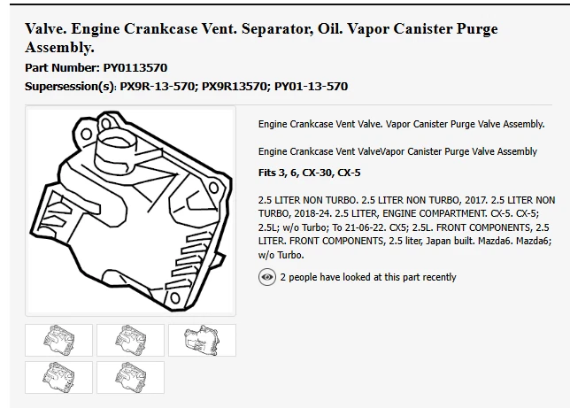 This genuine Mazda oil separator is a perfect fit for my CX-5! The quality is outstanding, just like OEM, and it arrived well-packaged. Installation was smooth since it matches the original specs exactly. The seller even double-checked compatibility with my VIN - great service. No more oil leaks or performance issues. Highly recommend for Mazda owners who want factory-grade reliability. Worth every penny for peace of mind!