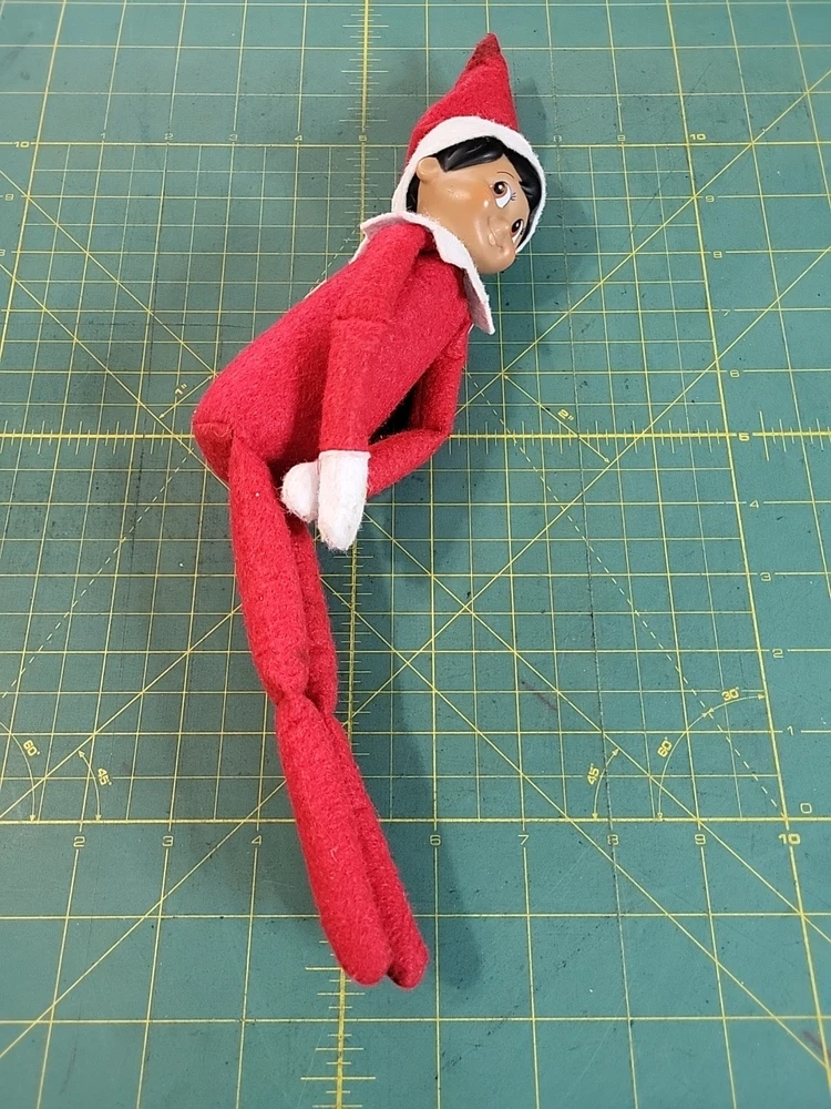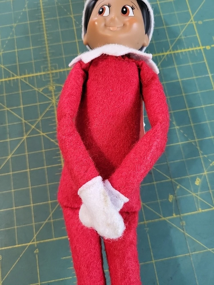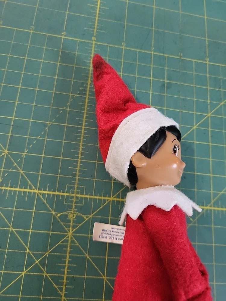 This is a 11" Elf on the Shelf Girl plush from 2013, part of the Elf on the Shelf collection. The elf has a hard face and is designed as a knee hugger. It is made of mixed materials in China and features the theme of Elves & Fairies. Perfect for Christmas and novelty collectors.