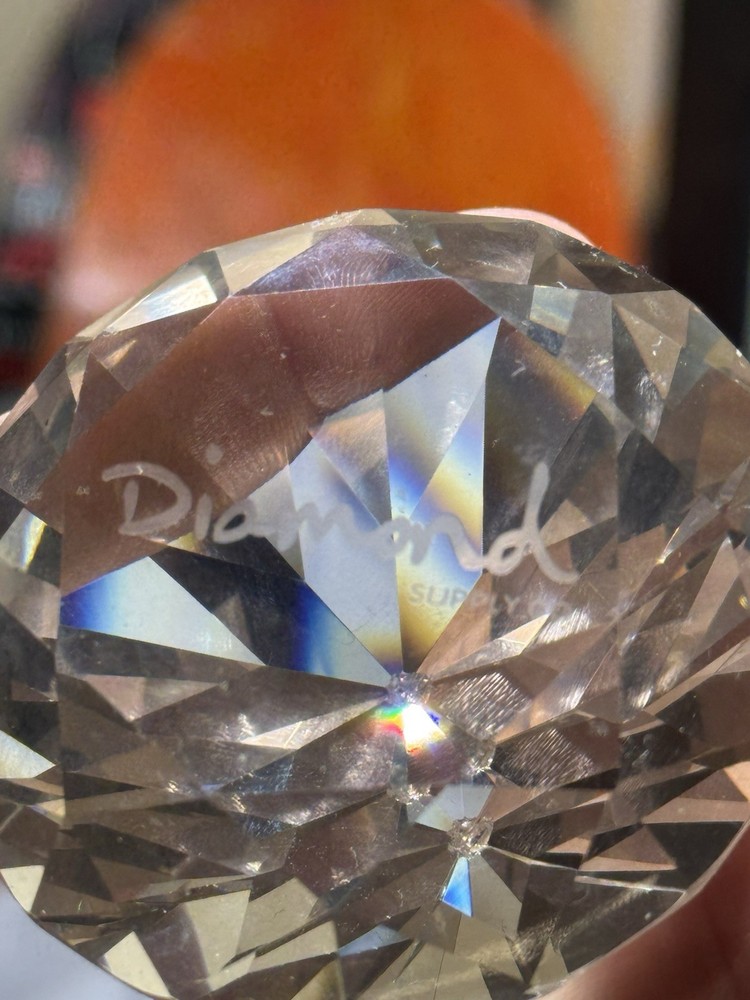 2013 Diamond Supply co. Diamond Paperweight Clear Glass - Used - few mild skuff marks and chip at point of diamond as shown in pic but over all good condition