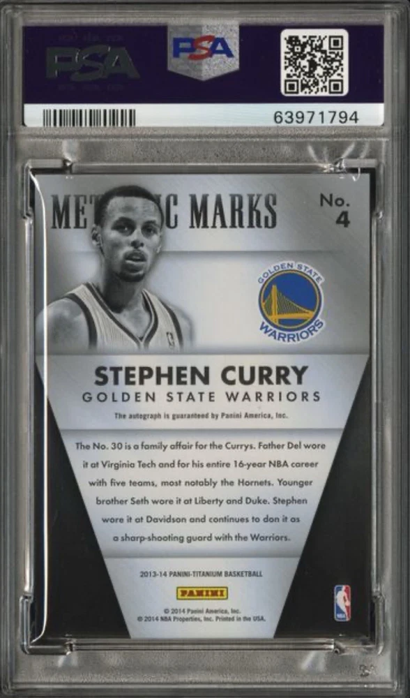2013 PANINI TITANIUM STEPHEN CURRY METALLIC MARKS AUTOGRAPH AUTO 04/25 PSA 8 -PSA 8 -Fast shipping -Message me with any questions or offers