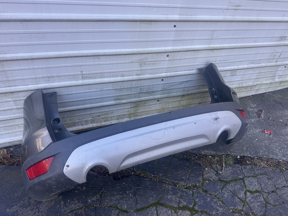 The product is a used OEM rear bumper cover for a 2013-2016 Ford Escape. It is black in color, made of plastic, and painted in finish. The part number is CJ5Z-17K835-BA. This bumper cover is specifically designed for the rear placement on the vehicle, making it a perfect replacement part for maintaining the original look and quality of the Ford Escape.