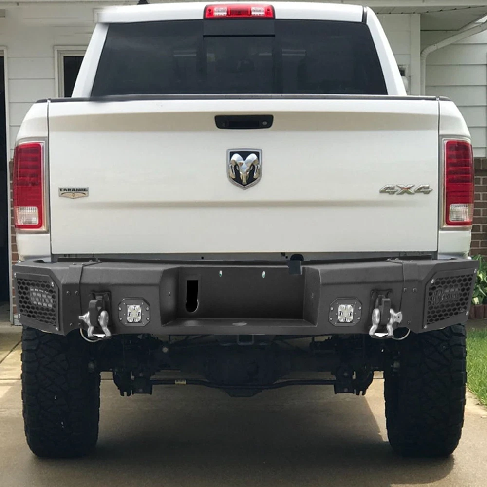 Store Categories Store Categories LED Work Light LED Light Bar LED Headlight LED Whip Light Led Fog Light Front&rear Bumpers Mount Bracket Home & Garden Children Toy discount items Business & Industrial E-bike UTV Accessories Other Rear Bumper w/Winch Plate&LED lights For 2013-2014-2015-2016-2017-2018 RAM 1500 About this item Suitable for 2013-2014-2015-2016-2017-2018 RAM 1500 Material: 5/32" steel and 2" x 0.120" seamless tubes for excellent strength and stiffness. The winch plate can withstand 12,000 pounds and the three-stage black powder coating on the front bumper of the winch is more durable and corrosion resistant. Package and weight: Front bumper : 42.5 x 22 x 15 (inches), Weight: 143.3 lbs. Rear bumper : 59.8 x 12.6 x 10.2 (inches), Weight: 83.8 lbs Simple installation, please follow the procedure in the instruction manual. We offer unconditional after-sales service for up to two year. Sensor hole does not support original, the sensor hole diameter is 19.5mm The rear bumper is perfectly installed and will not affect the opening and closing of the tailgate. The rear bumper has sensor holes, but they do not apply to the original, so you need to purchase additional sensors. Direct bolt-on installation, no cutting or welding required. Specification: Premium E-coating process for 5-year corrosion protection under normal use High strength D-ring mounts and D-rings included Winch plate - rated up to 12,000 pounds Fits 2013-2018 Ram 1500(Excluding Rebel) Models Easy bolt-on installation Textured black powder coat finish D-rings w/ rubber rings to provide extra protection against abrasion Fitment: Fits 2013 - 2018 Dodge Ram 1500 (Excluding Rebel) Package Included: 1 x Rear bumper for 2013 - 2018 Dodge Ram 1500 (Excluding Rebel) 4 x LED work lights 2 x D-rings 1 x Wiring Harness Notice: Please make sure the size is suitable for your vehicle before you purchasing. Due to the different display and different light, the picture may not reflect the actual color of the item. Please understand. Payment Shipping Returns Contact us About us Payment Item will be shipped out within 24-48 hours after payment completed. Please make sure your eBay address is correct before you pay. All the unpaid case will automatically opened after 4 days because the ebay final value charge of the transaction. Shipping United States Shipped by USPS/UPS/Fedex, usually takes 3-7 working days to complete delivery. Package will be sent out within 24-48 hours after the pament is cleared. Pick-up is unsupported service. We will not be responsible for any delivery failure due to unclear address. Delivery is not available on weekends, public holidays or after business hours. Returns We will accept returns or refund or exchange if they are unused and unmarked within 60 days. If you received wrong of defective products, please take photos and contact us to confirm. We must protect your interest as promsied. Remember to contact us via eBay message firstly. Please don't open the return request. Thanks in advance! Contact us Office Opening Times: Monday to Friday-9:00AM-18:00PM Beijing Time. We do our best to respond within 12-24 hrs. If no response within 24 hrs, please check the spam in your mail box. Ask us about bulk discounts if you want to buy 3 or more. Our store is good ebay seller and we are renowned auto suppliers seller in China who had earned the highest feedback on high quality we have factory in HongKong. Our Company is a Branch company that of a manufacturer which producing the lighting equipment and accessories for vehicles. We move and in charge our main business in E-commerce on eBay nowadays. About us ✔ Brand new item ✔ Factory Directly ✔ High quality, competitive price ✔ Warehhouse in US, AU, UK, DE ✔ FAST DELIVERY, 3-8 working days