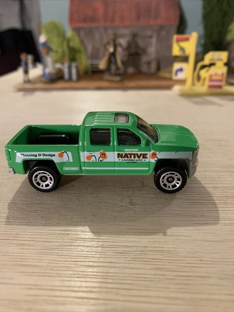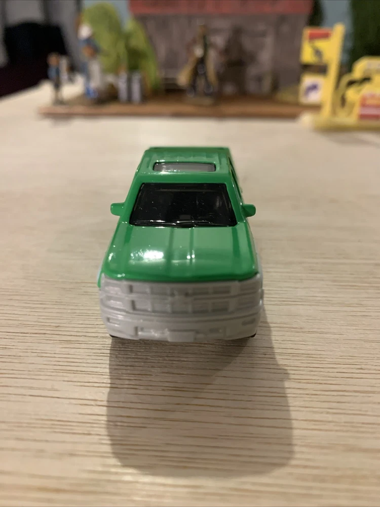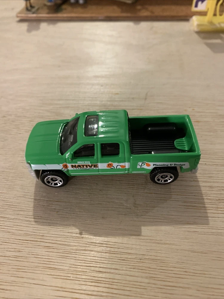 This is a Matchbox 1:64 scale diecast model of a 2015 Chevrolet Chevy Silverado 1500 in green. The collectible toy car features intricate details suitable for display in dioramas or collections. The model captures the essence of the Chevy Silverado 1500, making it a desirable addition for fans of diecast vehicles or Chevrolet trucks.