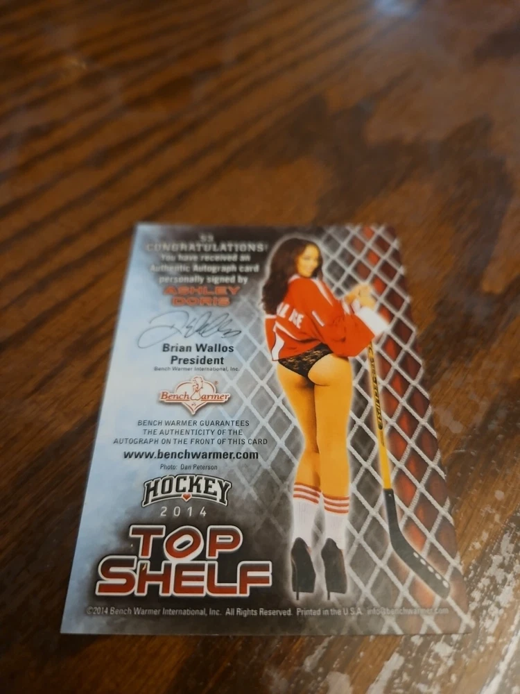 2014 Benchwarmer Hockey Top Shelf Autograph Silver Foil Card Ashley Doris #53 Auto Playboy Ashley Doris is an American actress who has always had a flair for the creative. After attending an acting class in New England at age 14 and performing as Nora in Brighton Beach Memoirs, she discovered a love of connecting with people through the art of story telling. Several years later, Ashley moved to Los Angeles where she hit the ground running, landing several roles in feature films, television, and commercials. Some of her credits include NCIS: Hawaii (CBS) Lanterns Lane (Hulu) Dirty Little Deeds (LMN). Please, look at all the pictures. Please check out my other eBay accounts... https://www.ebay.com/usr/kimmyrael https://www.ebay.com/usr/matlac99 https://www.ebay.com/usr/lacr6837 https://www.ebay.com/usr/malac9440 https://www.ebay.com/usr/lacr_3567 https://www.ebay.com/usr/lacroki8 https://www.ebay.com/usr/lacroki9 Shipping only to the continental US unless you contact me first. Will combine shipping!!!