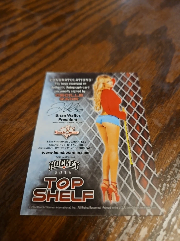 2014 Benchwarmer Hockey Top Shelf Autograph Silver Foil Card Cecille Gahr Playboy She is known for Beauty and the Geek (CW) and Bikini Destinations. Please, look at all the pictures. Please check out my other eBay accounts... https://www.ebay.com/usr/kimmyrael https://www.ebay.com/usr/matlac99 https://www.ebay.com/usr/lacr6837 https://www.ebay.com/usr/malac9440 https://www.ebay.com/usr/lacr_3567 https://www.ebay.com/usr/lacroki8 https://www.ebay.com/usr/lacroki9 Shipping only to the continental US unless you contact me first. Will combine shipping!!!