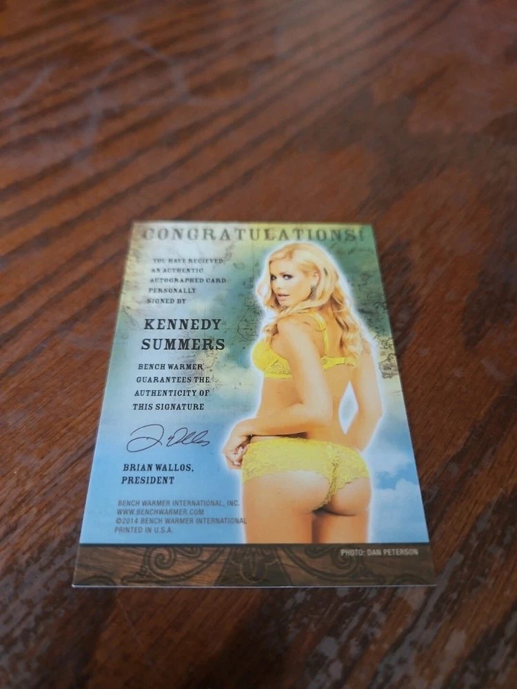 2014 Benchwarmer Treasure Chest Autograph Gold Foil Card Kennedy Summers Auto Playboy Kennedy was born in Berlin, Germany, and spent the rest of her life traveling and living all over the world, both with her family and as an international fashion model. She experience the world and other cultures, which resulted in her pursuit of an anthropology degree. Before going to medical school, she considered making travel documentaries. She got to see the world and live in Europe, Asia, South America, and the Middle East, which was all amazing experiences! As a model, she does runway, TV commercials, catalogues, print ads, promotions, short films, independent movies, and a lot of fantastic magazines. She went to medical school with the intention of taking my love for aesthetics and creating works of art through plastic surgery. Three years into medical school, she would become a Playboy Playmate. Please, look at all the pictures. Please check out my other eBay accounts... https://www.ebay.com/usr/kimmyrael https://www.ebay.com/usr/matlac99 https://www.ebay.com/usr/lacr6837 https://www.ebay.com/usr/malac9440 https://www.ebay.com/usr/lacr_3567 https://www.ebay.com/usr/lacroki8 https://www.ebay.com/usr/lacroki9 Shipping only to the continental US unless you contact me first. Will combine shipping!!!
