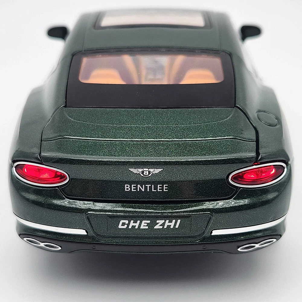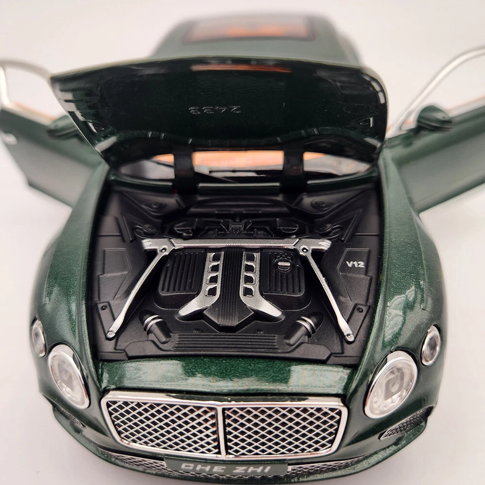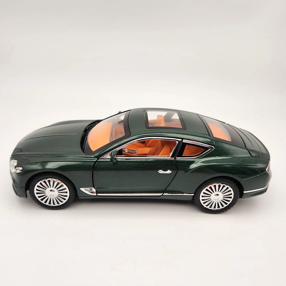 2014 Bentley Continental GT - 1:24 Scale Diecast Model - Hunter Green - With Opening Doors - Hood - Trunk - Lights - Sound. The Batteries And Box Are Included. It Measures 8 Inches Or 20 CM In Length And 3 Inches Or 7.60 CM In Width. In Stock And Ready To Ship.