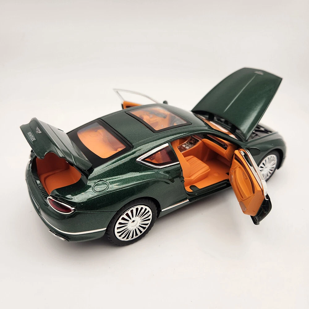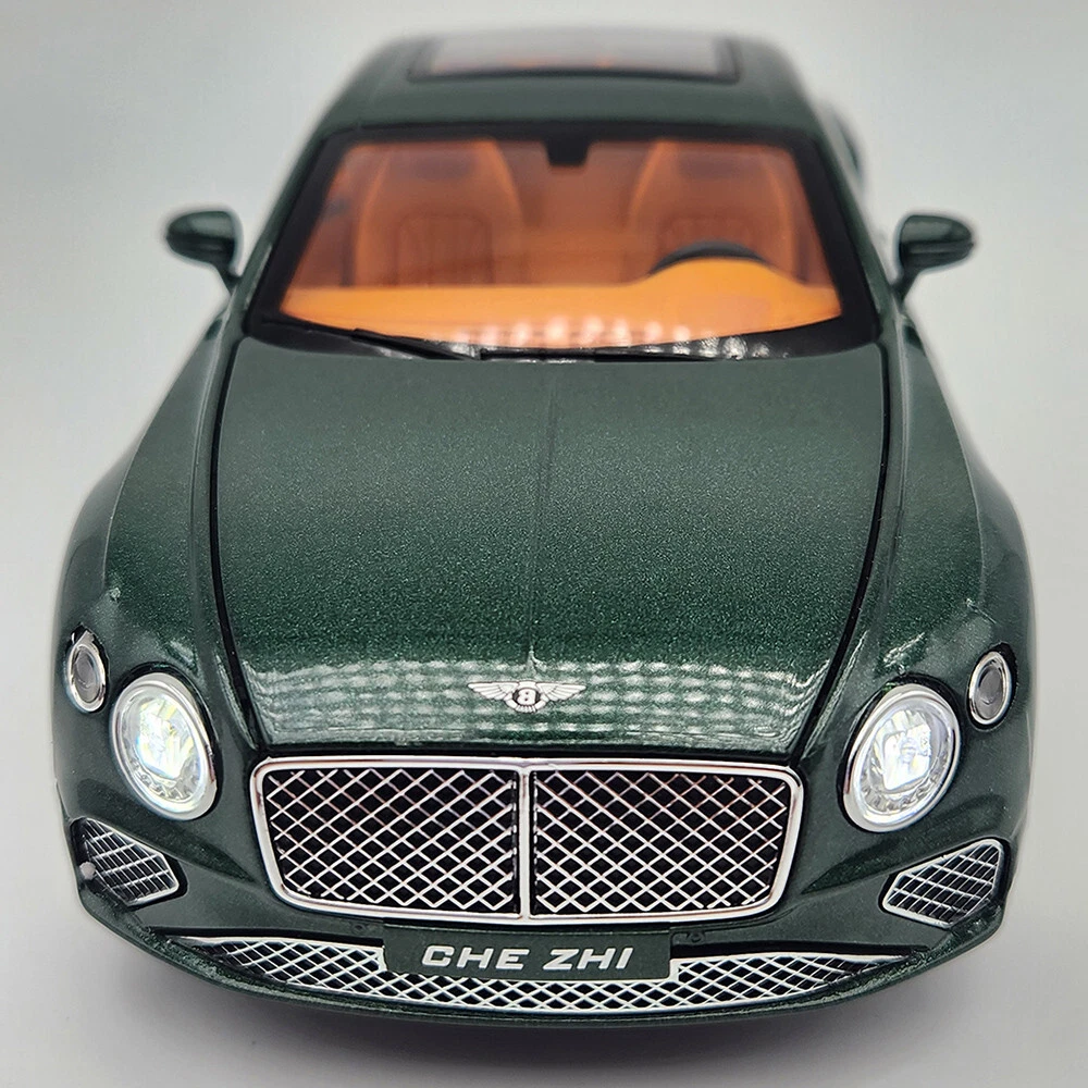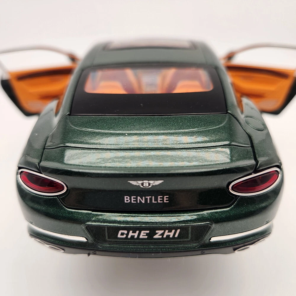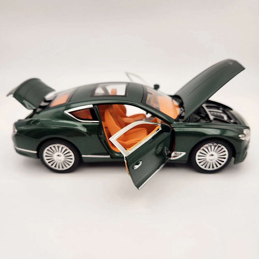 2014 Bentley Continental GT - 1:24 Scale Diecast Model - Hunter Green - With Opening Doors - Hood - Trunk - Lights - Sound. The Batteries And Box Are Included. It Measures 8 Inches Or 20 CM In Length And 3 Inches Or 7.60 CM In Width. In Stock And Ready To Ship.