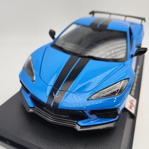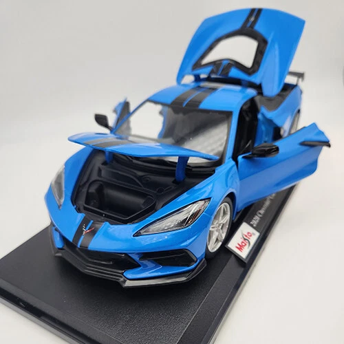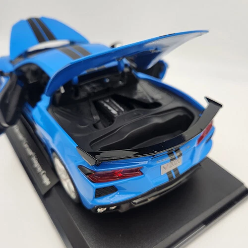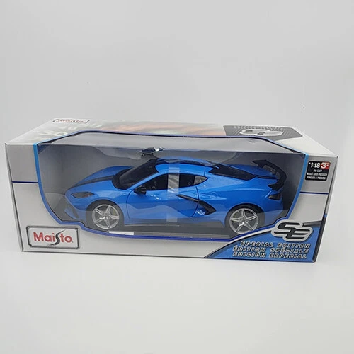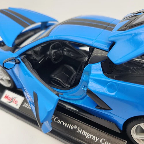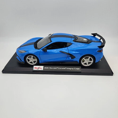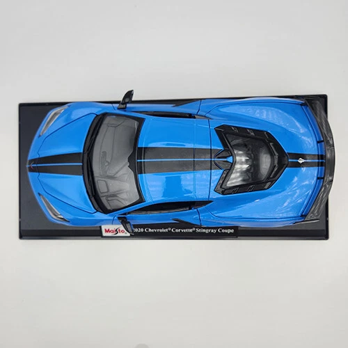 Maisto 2020 Blue Corvette Stingray 1:18 Scale - Measures 10 Inches In Length Or 25 CM And 4 Inches In Width Or 10 CM. Features Open Doors - Hood - Trunk. In Stock And Ready To Ship.