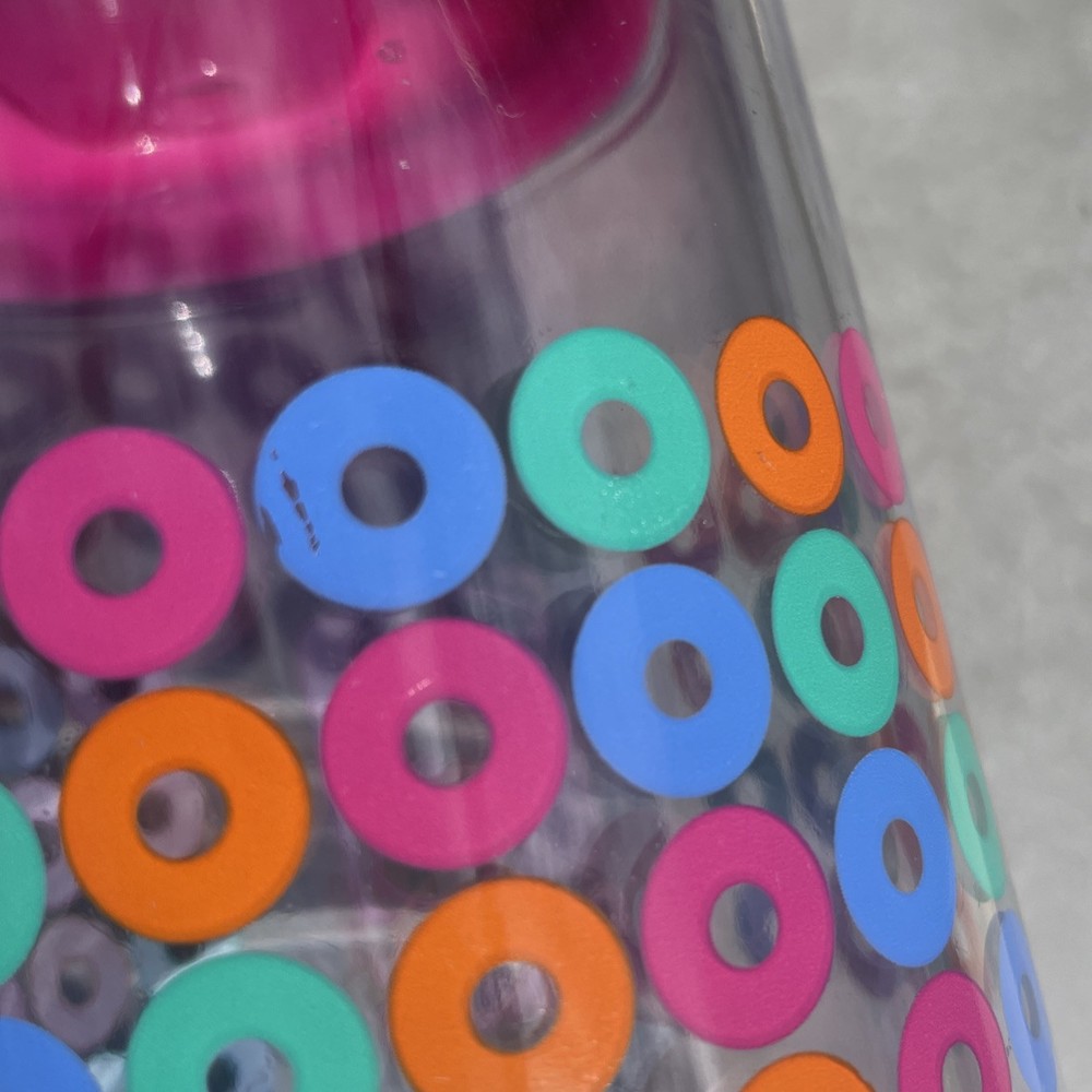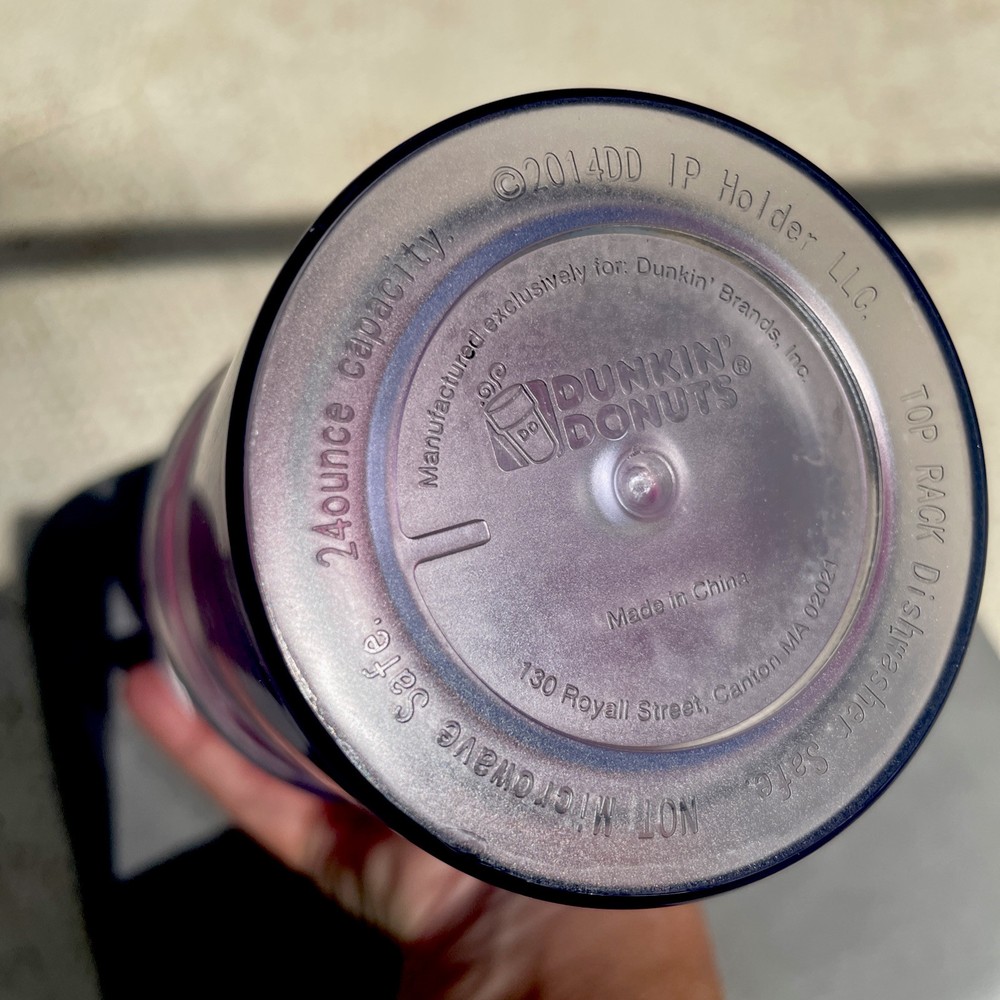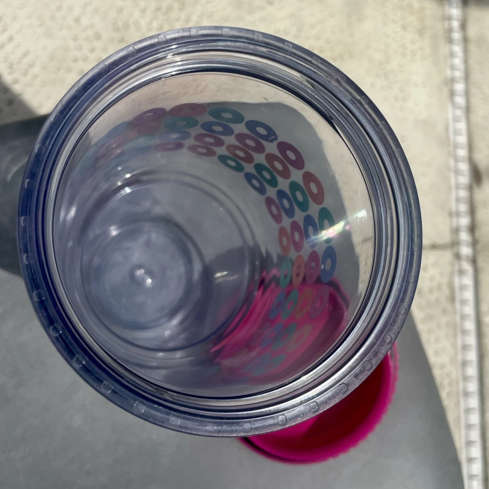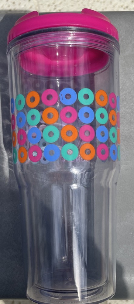 Brighten up your daily routine with the 2014 Dunkin' Donuts Acrylic Travel Tumbler, a vibrant addition to any collection or morning commute. Featuring a lively multi-color palette that captures the energetic essence of Dunkin' Donuts, this tumbler is an original piece from the celebrated coffee and tea brand, sure to delight enthusiasts and collectors alike. Crafted for durability and ease of use, the tumbler's design marries functionality with style, making it a great companion for your favorite hot or cold beverages on the go. Whether it's for your morning coffee or evening tea, this travel tumbler is a practical and colorful accessory that brings a touch of the iconic Dunkin' Donuts flair to your day.