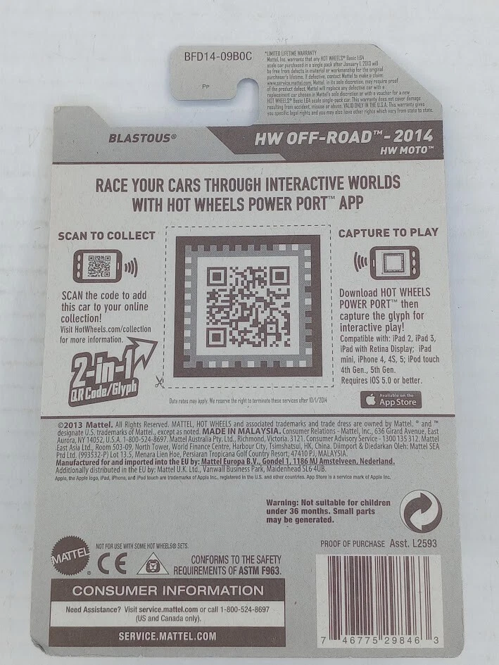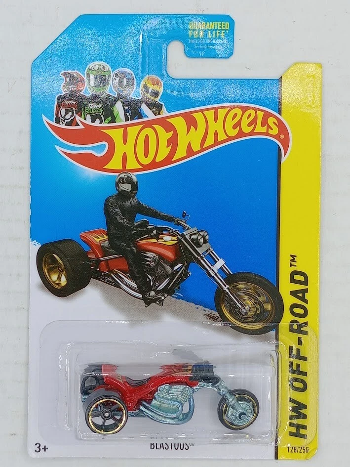 2014 Hot Wheels #128 HW Off-Road HW Moto BLASTOUS Red w/Black OH5 Spoke Gold Rim SKU#101196 Look closely at the pictures to see further details. We ships USPS PLEASE see photos for detailed condition!! PLEASE LOOK AT THE PHOTOS CAREFULLY BEFORE PURCHASING!! If you are purchasing more than one item from us and would like combined shipping, PLEASE request an adjusted invoice from us while still in the cart and BEFORE paying. eBay does not usually calculate combined shipping accurately and you might get overcharged. Please be aware that when we photograph items, we use lighting that will show the details well. Although we try to present the product as accurately as possible, the lighting may affect the overall look of the item by appearing lighter/darker or possibly a different hue than the actual item. Depending on the type of lighting you have in your home, there may be some differences between the photos and the actual item. If this is a concern of yours, please feel free to request additional photos made in natural lighting or ask for a more detailed description of the item PRIOR TO PURCHASE! PLEASE NOTE: We greatly appreciate your interest in our item for sale. We look forward to a pleasant, quick and satisfying transaction for everybody, so please note the following information before bidding. Thank you! ITEM DESCRIPTIONS: * We will try to describe items well and provide plenty of photos. Please review these carefully before bidding or purchasing. * Only the items pictured and described are what you will receive when purchased. * We will occasionally offer an item clearly marked "AS-IS". This means that we are not sure if it works because we are unable to test it for whatever reason. We will offer these at a discounted price then a similar "working" item. It is possible that these items will work fine, but it also is possible that these items are more useful for their parts. Please only bid on or purchase these items if you are well aware of this, as we will only provide refunds of actual item price (no shipping cost refunds) for these items. * If you have any questions that aren't addressed by the descriptions or photos, please feel free to ask before you bid. * May need detailed cleaning SHIPPING: * We usually do not offer shipping to international addresses, but ARE WILLING TO TAKE CONSIDERATIONS. * We try to pack items as carefully as possible, but damage may occur during shipping. If you receive an item that was damaged in shipping, please contact us and we will work with you to resolve the problem. * We will combine shipping costs for all items the same buyer purchases from us within 2 days. Please wait to pay for items until you're done shopping with us. Please contact us if you're expecting to buy more items from us, or to have us adjust the shipping costs. * We will usually ship items out within 24 hours of payment being received Sunday through Friday at noon. We will notify the buyer if there will be a delay in shipping for some reason. Please allow additional time for holidays and weekends when the post office is closed. If payment is received after noon (EST) on Friday, the item might not be shipped until the following Monday. * We do try to recycle shipping materials as much as possible. RETURNS: We abide by eBay's Money Back Guarantee. We definitely want our customers to be happy with their purchase! You may return an item within 30 days of receiving it with the following guidelines: * If the item is defective or damaged (unless we clearly marked the listing "AS-IS"), the buyer will receive a full refund after the buyer returns it and it is received by us. Customers who falsely claim their item is defective, damaged, or not as described in order to receive a full refund and free return shipping will be permanently blocked from making future purchases from us. * If the item is as described (including "AS-IS" items) and the buyer decides for any other reason than defective/damaged to return it, only the actual price of the item will be refunded once it has been returned and it is received by us. The buyer will be asked to pay all original and return shipping charges. This includes all reasons other than defective/damaged, including wrong size, wrong type, changed mind, etc. All "AS-IS" items will fall into this category of return. Please make sure the item is what you want before purchasing it. * Please contact us before initiating a refund request. FEEDBACK: We always leave feedback at the end of transaction. We consider the transaction to be over when we receive feedback from the buyer confirming the item arrived satisfactorily. If you are unsatisfied with your purchase please contact us before leaving neutral or negative feedback. WE APPRECIATE POSITIVE FEEDBACK IF YOU ARE SATISFIED WITH YOUR PURCHASE! THANK YOU FOR YOUR INTEREST IN THIS ITEM!