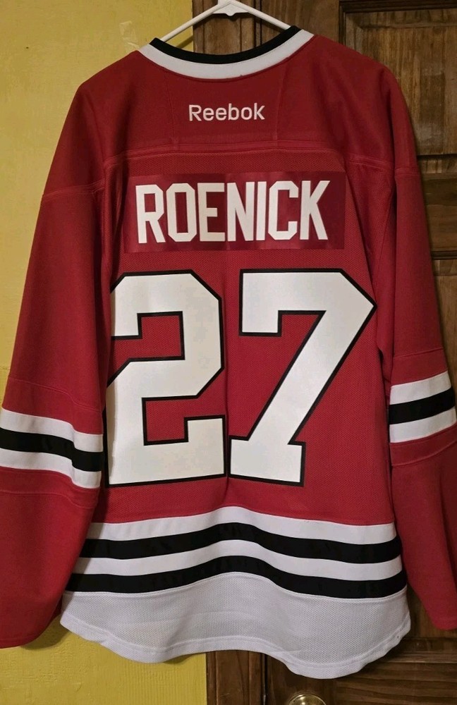 Brand:ReebokTeam:Chicago BlackhawksPre & Post Season:Regular SeasonSport:HockeyPlayer:Jeremy RoenickLeague:National Hockey League (NHL)Product:JerseyColor:RedSize:L