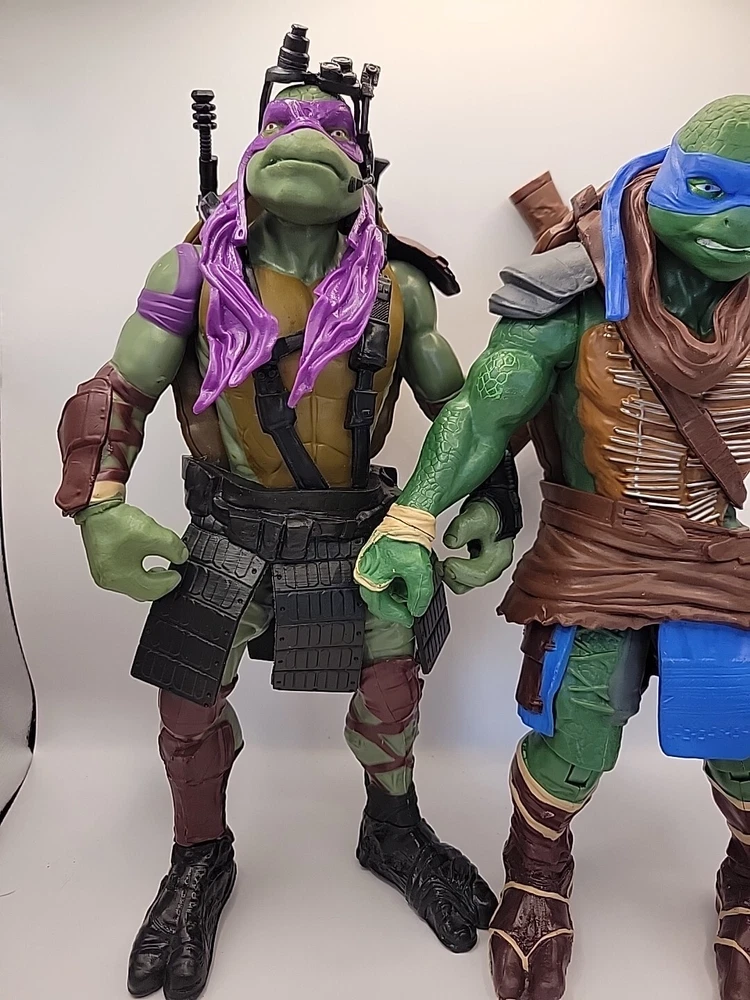 2 large 11" figures no weapons Dive into the action-packed world of the Teenage Mutant Ninja Turtles with this 11" Leonardo and Donatello action figure set from Playmates Toys. Crafted with durable plastic, these figures are inspired by the animated adventures from the popular TV show and capture the essence of the beloved characters in impressive detail. Released in 2014, these figures are part of the TMNT series and stand tall with their iconic weapons, ready to recreate epic battles or display with pride. Whether you're a long-time fan or new to the franchise, these original Playmates TMNT figures are a must-have to celebrate the enduring legacy of the Teenage Mutant Ninja Turtles.