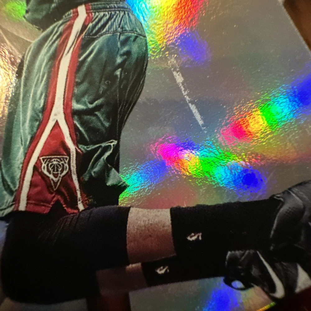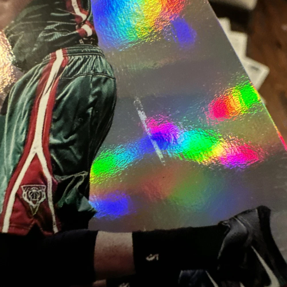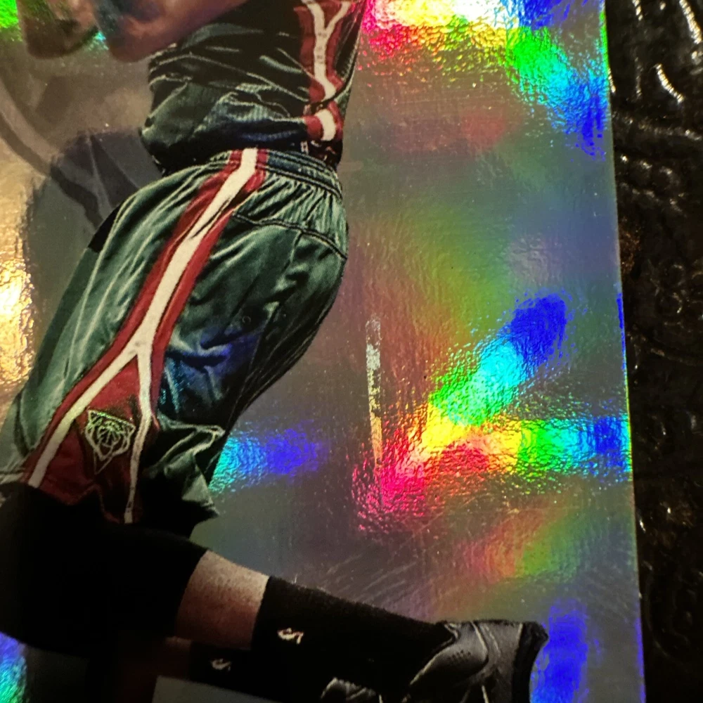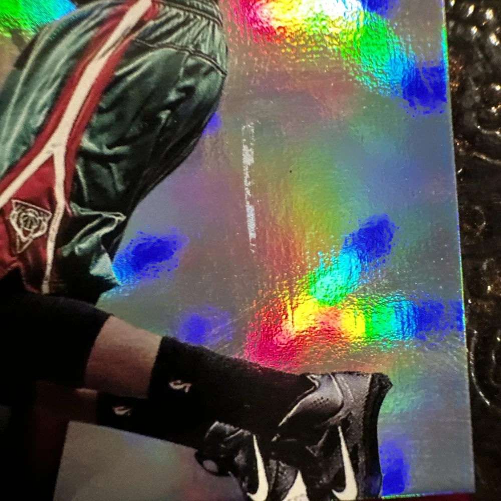 In the middle of the card there seems to be some damage on the surface of the card. It looks as if a piece of. it was peeled off. There will be clear pictures of that as well.