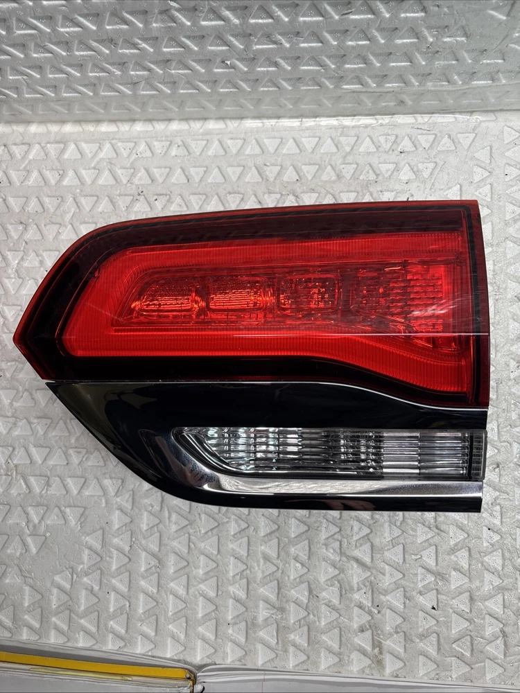 The product is a genuine OEM right pass inner lid tail light assembly designed for the 2014-2020 Jeep Grand Cherokee. It features a red LED light with a black housing and a red lens color. The tail light assembly is DOT-certified, SAE-certified, and OE-certified, ensuring quality and compliance with safety standards. With a wattage of 16W and a voltage of 13.5, this bolt-on assembly is manufactured in Mexico and is suitable for the inner placement on the vehicle. Ideal for replacing damaged or worn-out tail lights, this product is a reliable and authentic part from the Jeep brand.