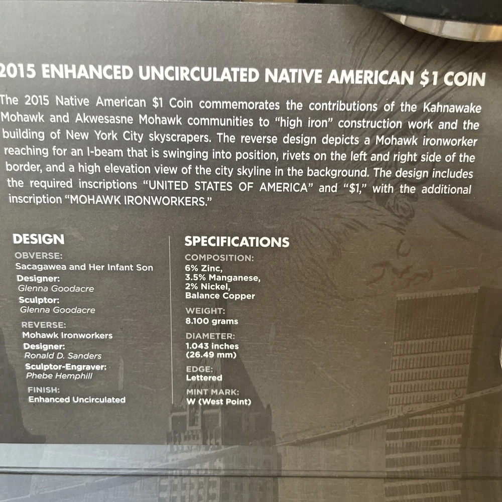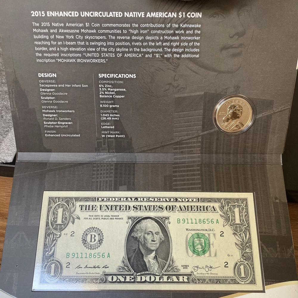 2015 And 2016 American $1 Coin And Currency Set,; Code Talkers, Iron Workers