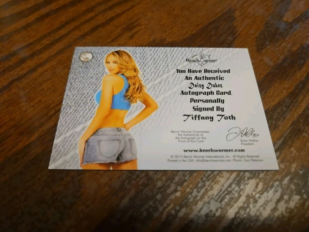2015 Benchwarmer Daizy Dukez Autograph Gold Foil Card Tiffany Toth Auto Playboy Tiffany, a mix of Hungarian, French, and Irish was born and raised in beautiful Southern California. Born March 28th, Tiffany is your ideal Aries, always wanting to try new and exciting things that are beyond her comfort zone. One of those exciting adventures were walking through the doors of Playboy. Following her shoots with them, she signed with an agent and began booking jobs shooting for lingerie companies such as Shirley of Hollywood, Seven Til Midnight, Elegant Moments and Jvalentine. After several years working events for Playboy, Hef decided to make Tiffany the September 2011 Playmate. Being a Playmate was a life changing experience that allowed her to travel to places such as New Zealand, Korea and South America. During this time she became the face of the Palms Hotel Ads and Billboards and even found herself on the covers of magazines such a Guitar World, Iron Man Magazine and Muscle & Fitness. Among her favorite pleasures are spending time with family and her four dogs, traveling, cooking and painting. Tiffany resides in California where she maintains her busy schedule of modeling. Please, look at all the pictures. Please check out my other eBay accounts... https://www.ebay.com/usr/kimmyrael https://www.ebay.com/usr/matlac99 https://www.ebay.com/usr/lacr6837 https://www.ebay.com/usr/malac9440 https://www.ebay.com/usr/lacr_3567 https://www.ebay.com/usr/lacroki8 https://www.ebay.com/usr/lacroki9 Shipping only to the continental US unless you contact me first. Will combine shipping!!!