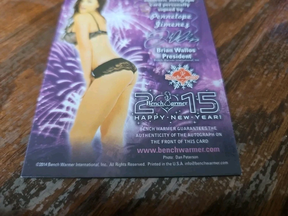 2015 Benchwarmer Happy New Year Autograph Gold Foil Card Pennelope Jimenez Auto Playboy Gorgeous, buxom, and shapely brunette knockout Pennelope Manriquez Jimenez was born on July 26, 1978 in San Diego, California. She's of Mexican descent. Her family hails from Ensenada. Pennelope's father's family is Spanish and her mother's family is French. Jimenez lived for a while in Mexico City and resided in Garden Grove, California for three years. She went to both junior high and high school in Corona, California before eventually settling in Huntington Beach, California. In 2000 Pennelope appeared in XFL "Cheerleader" TV commercials with "Playboy" Playmate Karen McDougal and Rachel Sterling. McDougal encouraged Pennelope to try out for "Playboy." She was the Playmate of the Month in the March, 2003 issue of the famous men's magazine. Jimenez not only was featured in a few "Playboy" videos, but also made guest appearances on episodes of the TV series "Spy TV" and "The Bold and the Beautiful." Moreover, Pennelope has a small part as a harem girl in "The Scorpion King." In the wake of her Playmate stint Jimenez has continued modeling in various catalogs, campaigns, and TV commercials. She was Miss September in the 2005 "Playmates at Play at the Playboy Mansion" swimsuit calendar. In 2006 Pennelope was featured in numerous ads for Jose Cuervo. She lives in California. Please, look at all the pictures. Please check out my other eBay accounts... https://www.ebay.com/usr/kimmyrael https://www.ebay.com/usr/matlac99 https://www.ebay.com/usr/lacr6837 https://www.ebay.com/usr/malac9440 https://www.ebay.com/usr/lacr_3567 https://www.ebay.com/usr/lacroki8 https://www.ebay.com/usr/lacroki9 Shipping only to the continental US unless you contact me first. Will combine shipping!!!