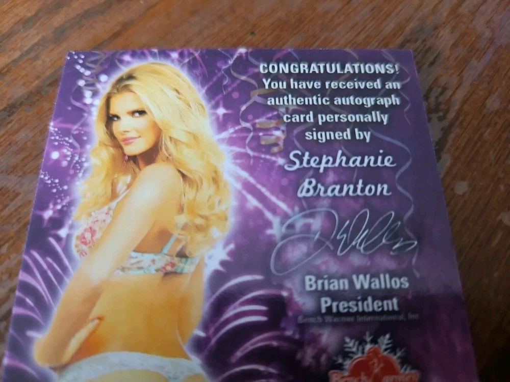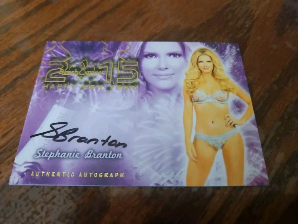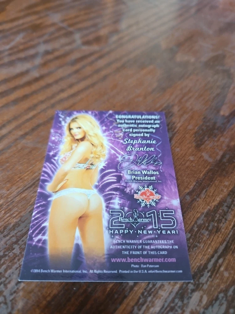 2015 Benchwarmer Happy New Year Autograph Gold Foil Card Stephanie Branton Auto Playboy Canadian Playmate Stephanie Branton is Playboy's Miss September 2014. The blonde beauty grew up on the scenic island of Newfoundland. "Some people back home said I couldn't do it," Branton told Playboy. "I just knew inside that if I took a leap of faith and worked hard, I could make this happen. I never gave up." The lack of opportunities for a modeling career in her hometown pushed Branton to make the move to Toronto, where she began quite a career for herself. She modeled for print, shot commercials and appeared in music videos. The future Playmate got her break when she landed a gig at a Playboy Golf event and was approached by casting directors. They asked if she was already a Playmate, and when they found out she wasn't they told her she should pose for photographer Josh Ryan in Los Angeles. Branton jumped on the opportunity. She packed up her life in Canada and made her way to Los Angeles to see what Playboy had in store for her. Branton started off as a Coed for Playboy, shooting several pictorials and videos. She was featured in Playboy's "Northern Star" series with other Canadian Playboy models and Playmates. It didn't take long for Branton to be made Miss September 2014, and she said she couldn't be more excited to join the Playmate family. For her shoot, Playboy took Stephanie down to Louisiana's Nottoway Plantation and Resort. She felt right at home, both in the sultry, sociable South ("I feel like an honorary Southern belle," she says) and in front of the camera. "I don't see myself as a sexpot type in real life," said Miss September, "but I love getting into that character as a model. I love giving hot. Although I can be shy and quiet at times, I am a bit of an exhibitionist. I'm comfortable, as they might say in Louisiana, getting' naked." Please, look at all the pictures. Please check out my other eBay accounts... https://www.ebay.com/usr/kimmyrael https://www.ebay.com/usr/matlac99 https://www.ebay.com/usr/lacr6837 https://www.ebay.com/usr/malac9440 https://www.ebay.com/usr/lacr_3567 https://www.ebay.com/usr/lacroki8 https://www.ebay.com/usr/lacroki9 Shipping only to the continental US unless you contact me first. Will combine shipping!!!