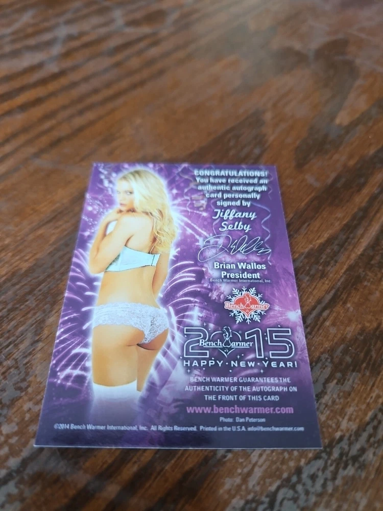 2015 Benchwarmer Happy New Year Autograph Gold Foil Card Tiffany Selby Auto Playboy This is currently the only one on eBay. Luscious, buxom, and shapely blonde bombshell Tiffany Selby was born on November 14, 1981 in Jacksonville, Florida. Tiffany began her modeling career at age one when she was crowned Miss Baby Jacksonville. Selby was encouraged by her mother to start attending modeling school at age fifteen. At age eighteen she started competing in Miss Hawaiian Tropic contests. Tiffany moved to Orlando, Florida at age twenty-two. A couple years later Selby moved a second time to Los Angeles, California. Selby has modeled for numerous print ads, billboards, calendars, and catalogs. Tiffany was the Playmate of the Month in the July, 2007 issue of "Playboy." She's been a spokes model for such clients as Hankook Tires, MHT Wheels, Budweiser, and Suzuki. Selby is a member of the USA National Bikini Team. Tiffany has appeared as herself on both "The Girls Next Door" and "Bikini Destinations." Selby lives in Los Angeles, California and continues to model. Please, look at all the pictures. Please check out my other eBay accounts... https://www.ebay.com/usr/kimmyrael https://www.ebay.com/usr/matlac99 https://www.ebay.com/usr/lacr6837 https://www.ebay.com/usr/malac9440 https://www.ebay.com/usr/lacr_3567 https://www.ebay.com/usr/lacroki8 https://www.ebay.com/usr/lacroki9 Shipping only to the continental US unless you contact me first. Will combine shipping!!!