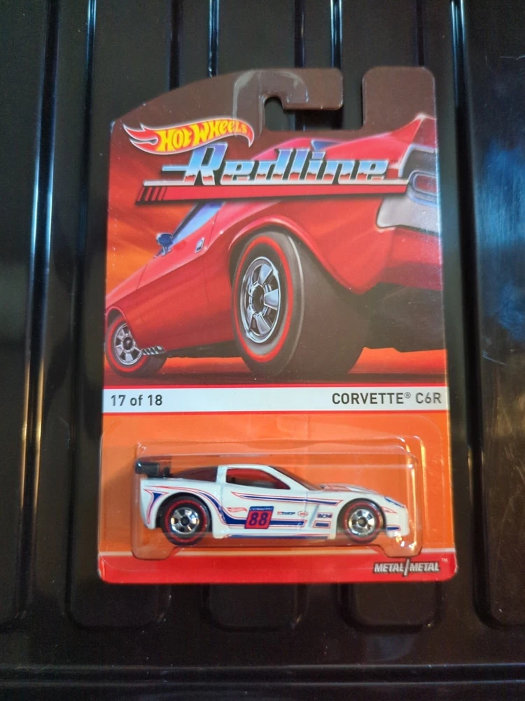 The 2015 Hot Wheels Redline Corvette C6R is a diecast car in 1:64 scale, part of the Hot Wheels Redlines series. It is a Chevrolet vehicle in a white color, featuring the iconic red lines design. This model is from Malaysia and remains unopened in its original box, perfect for collectors of Hot Wheels redline cars.