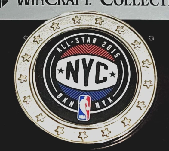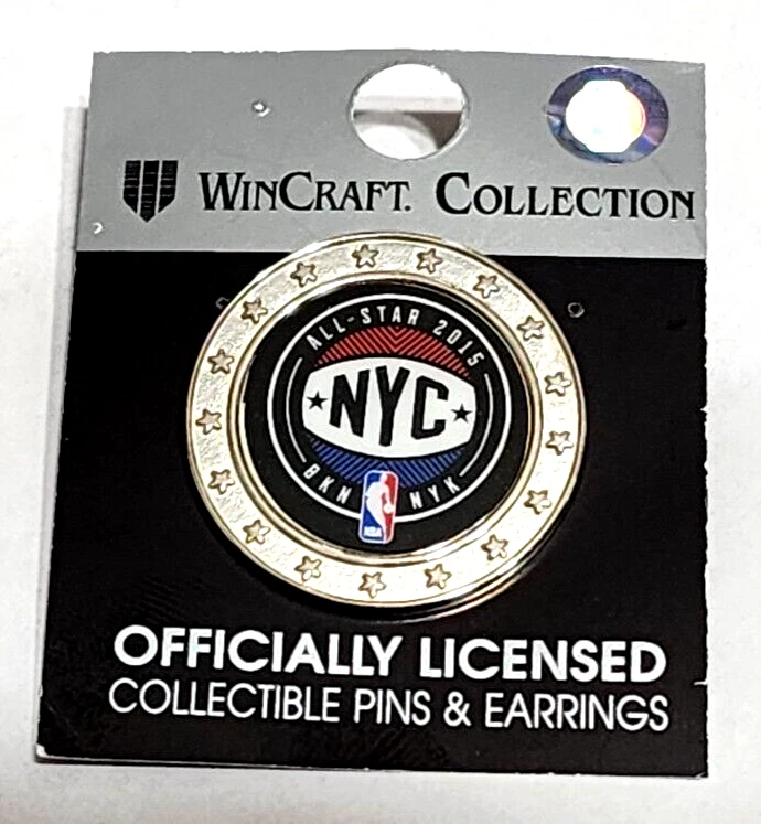 Show off your love for the New York Knicks with this officially licensed 2015 NBA All Star Game basketball pin from WinCraft. The multi-color pin features both the BKN and NYK and is perfect for any basketball fan. Made in China with high-quality materials, this pin is a great addition to any collection. Whether you're attending the All Star Game or just want to show off your team spirit, this pin is a must-have. Get yours today and celebrate one of the most exciting events in basketball Loc. S1-FF