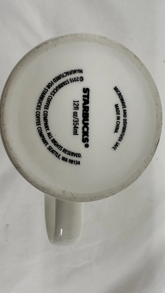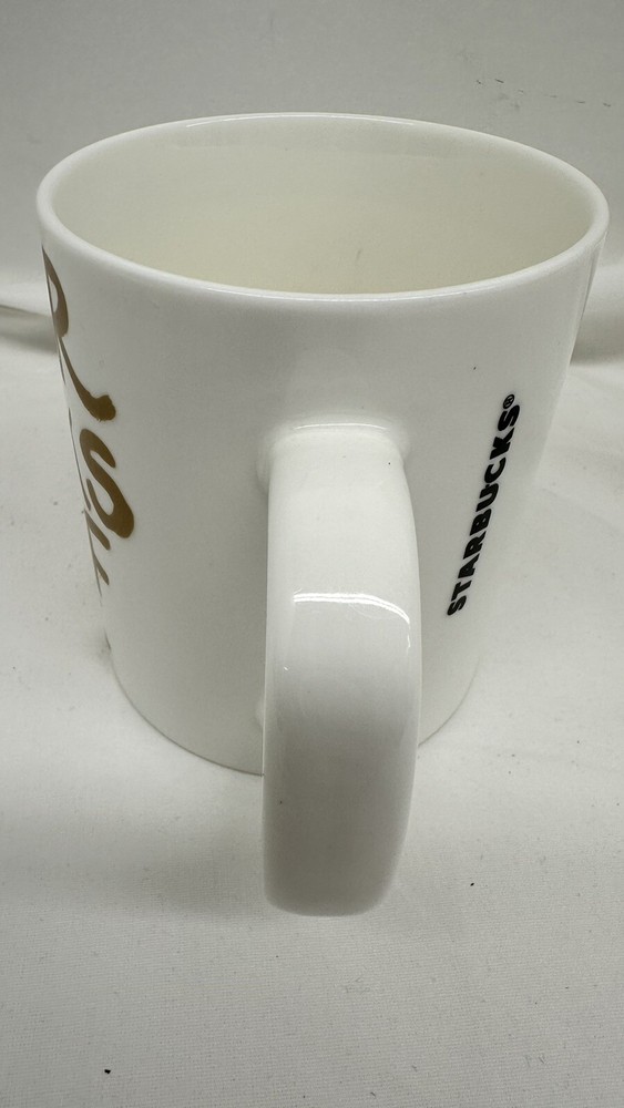 This 2015 Starbucks Coffee mug is a must-have for any coffee and tea lover out there! With a beautiful white and gold color combination, this 12oz ceramic mug features graffiti-style letters that add a touch of uniqueness to your collection. Made in China, this original piece is perfect for collectors of Starbucks memorabilia and is a great addition to any collection. The mug is not modified and is an authentic piece, making it a rare find. Get your hands on this Starbucks Coffee mug and enjoy your morning brew in style!